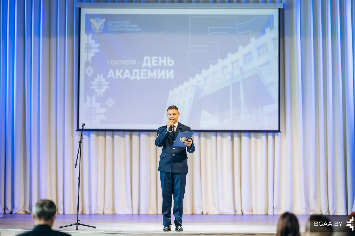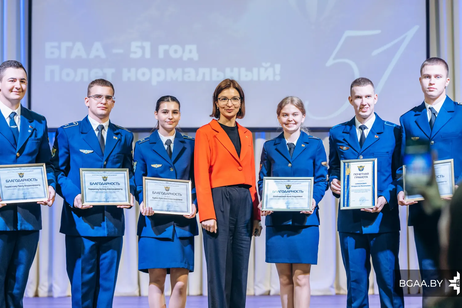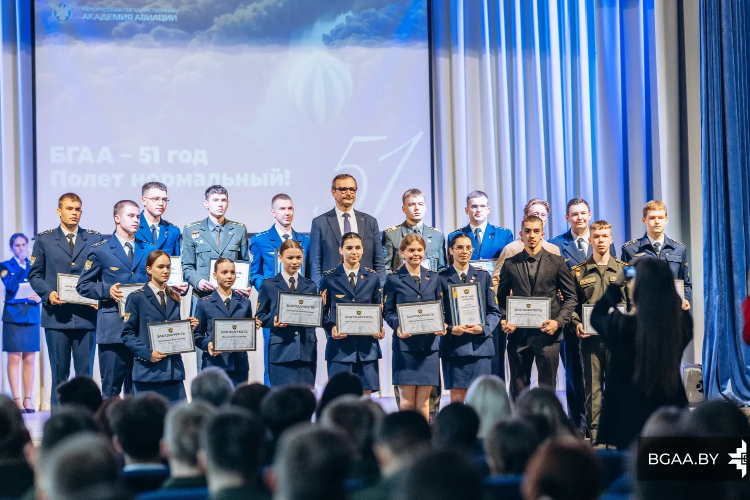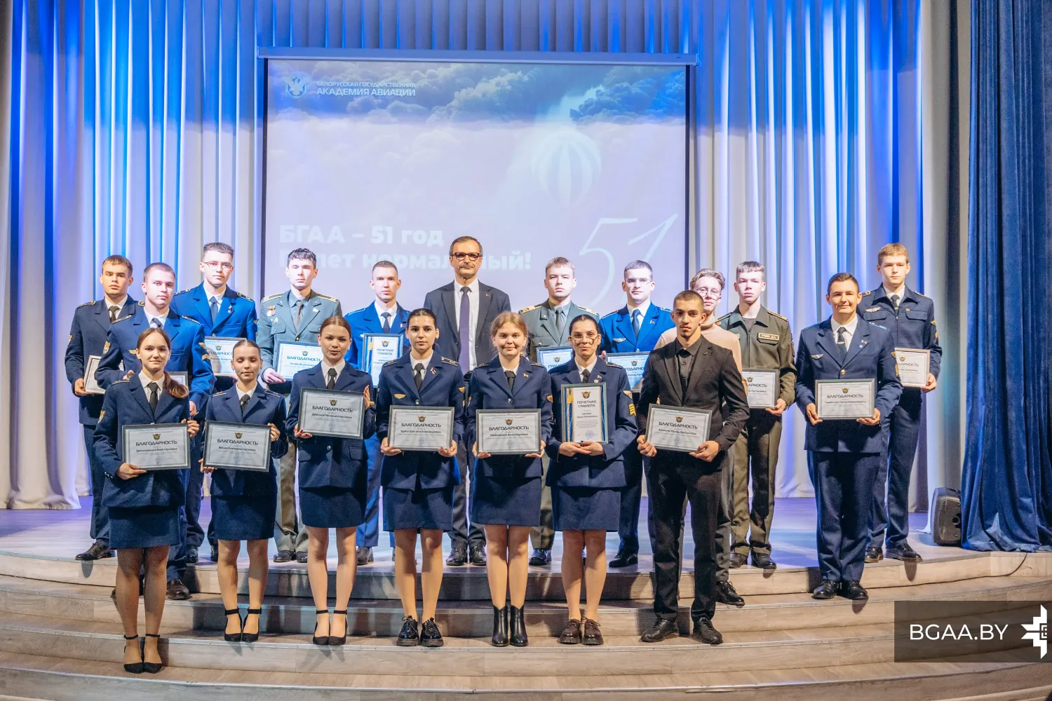 «БГАА сегодня является современным учреждением образования и держит достойную планку среди других учебных заведений, и в этом есть вклад каждого из вас. Пусть у нас всегда в этих стенах будет вера, надежда и любовь. Вера в то, что мы заняты своим делом и в то, что мы добьемся высокого результата. Надежда на то, что на этом пути будет не так много трудностей, которые мы успешно преодолеваем. И естественно любовь: любовь к тому делу, которое мы сегодня делаем».
