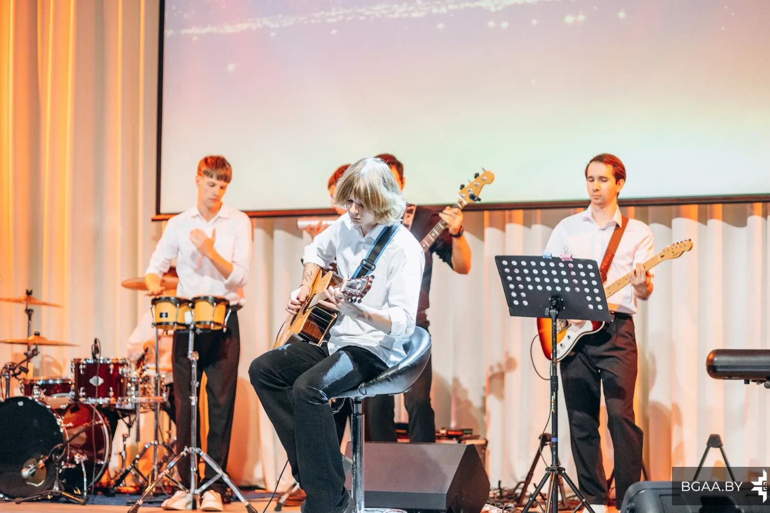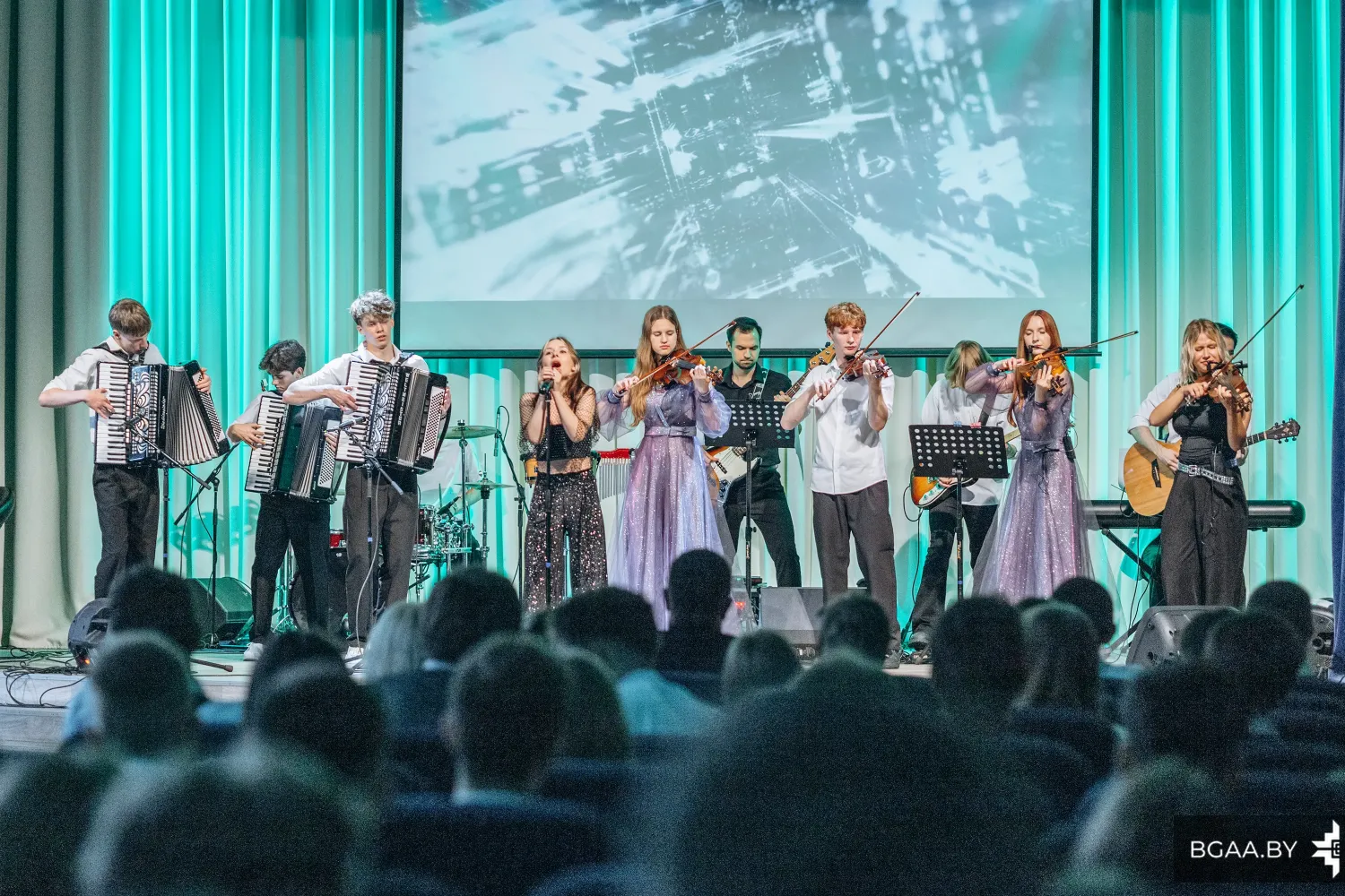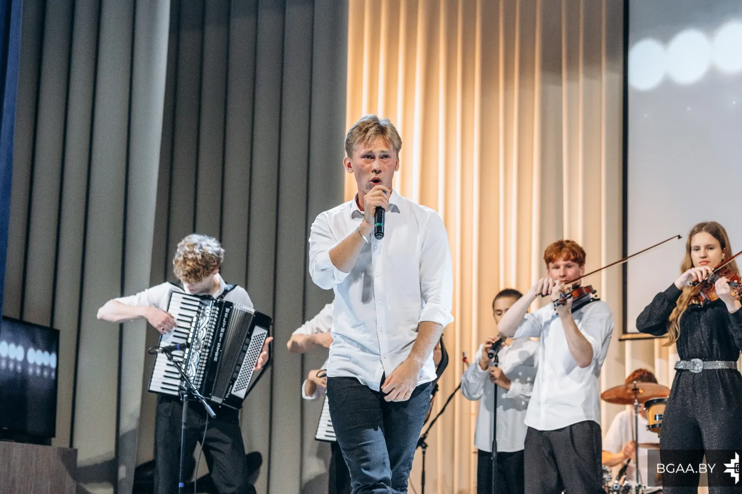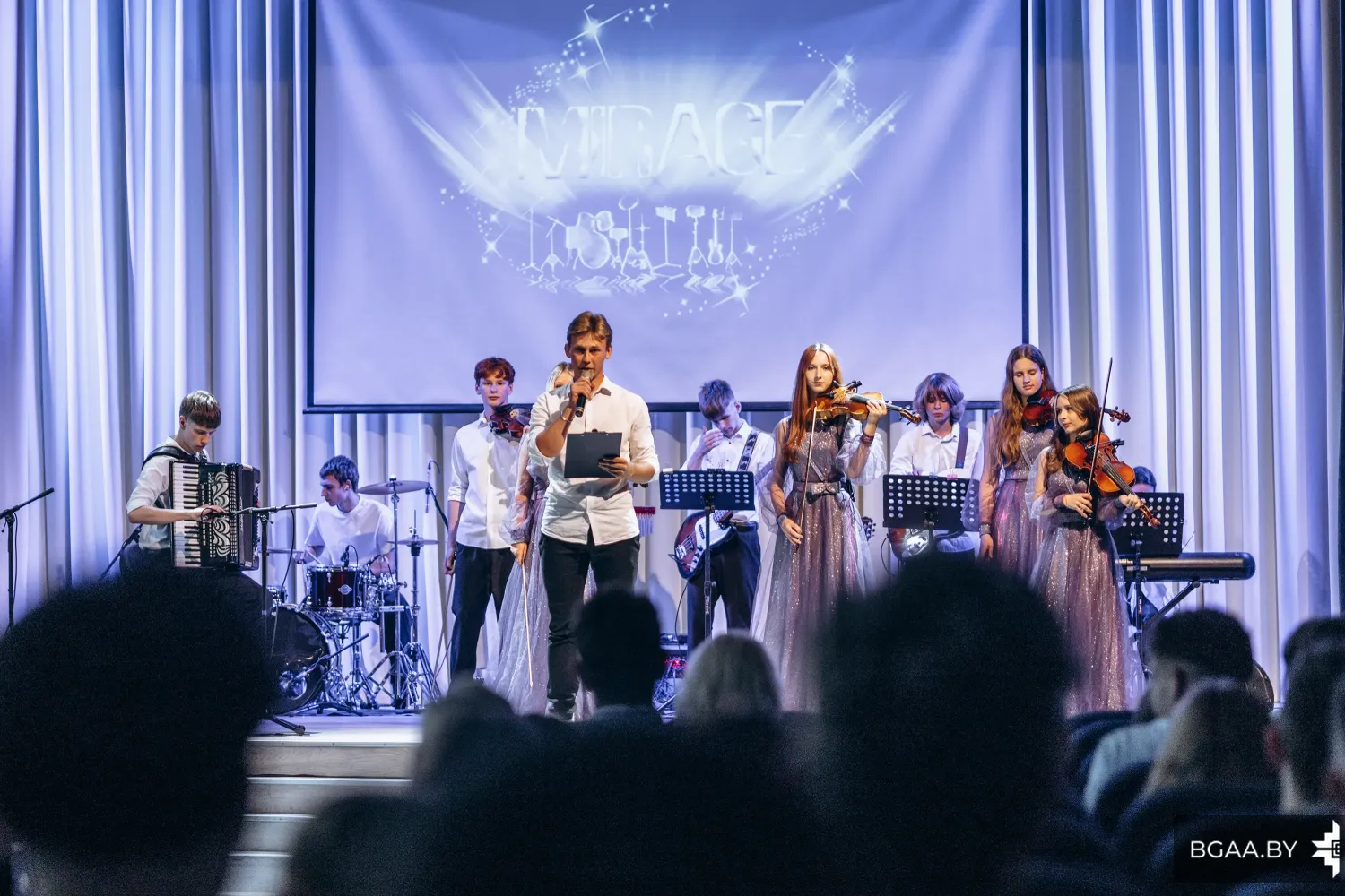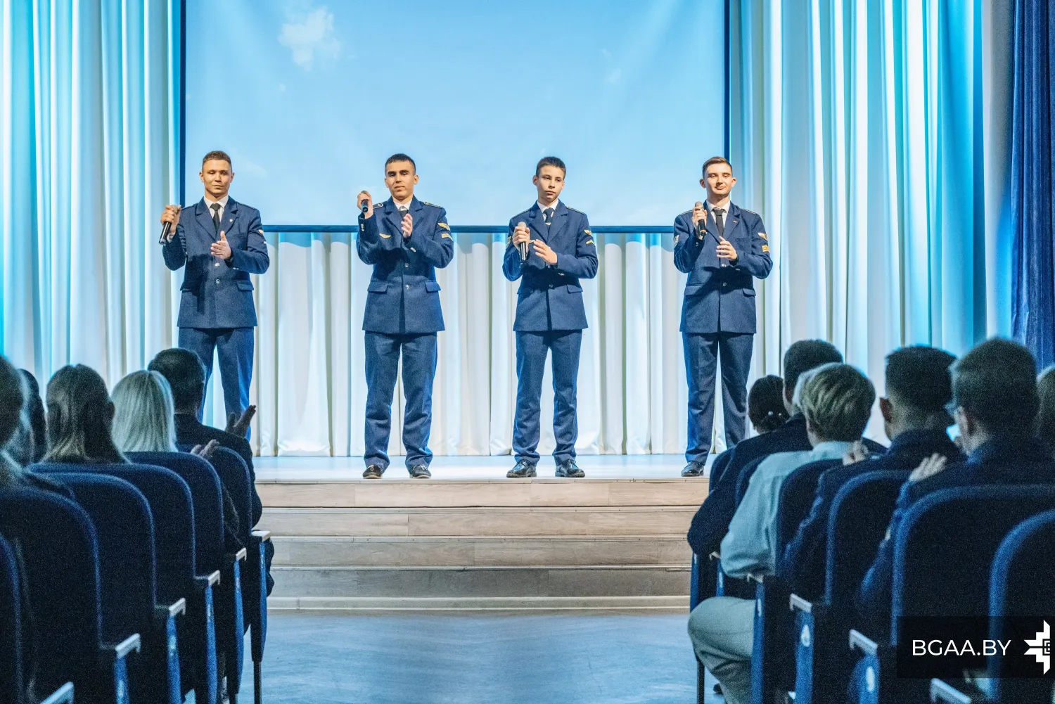 В преддверии значимой даты для сотрудников и курсантов БГАА прошел концерт ансамбля «Мираж». Ярко, торжественно и сплоченно – именно так можно описать концерт, который организовали музыканты ГУО «Гимназия № 5 г. Минска имени героев встречи на Эльбе».