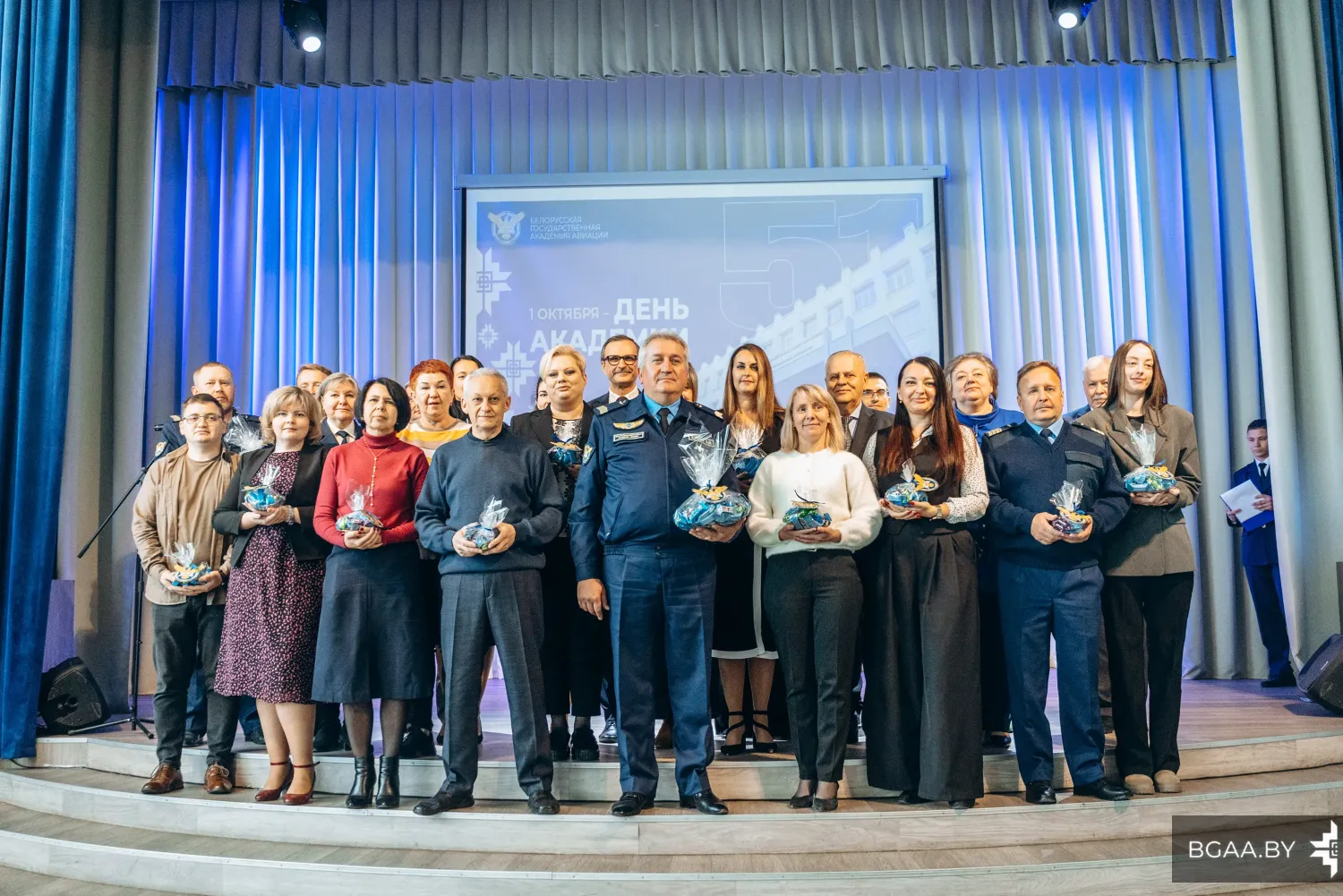 Завершились торжества 3 октября праздничным концертом творческого объединения «АРТ-пропеллер», в ходе которого лучшие курсанты были отмечены благодарностями и грамотами руководства академии.