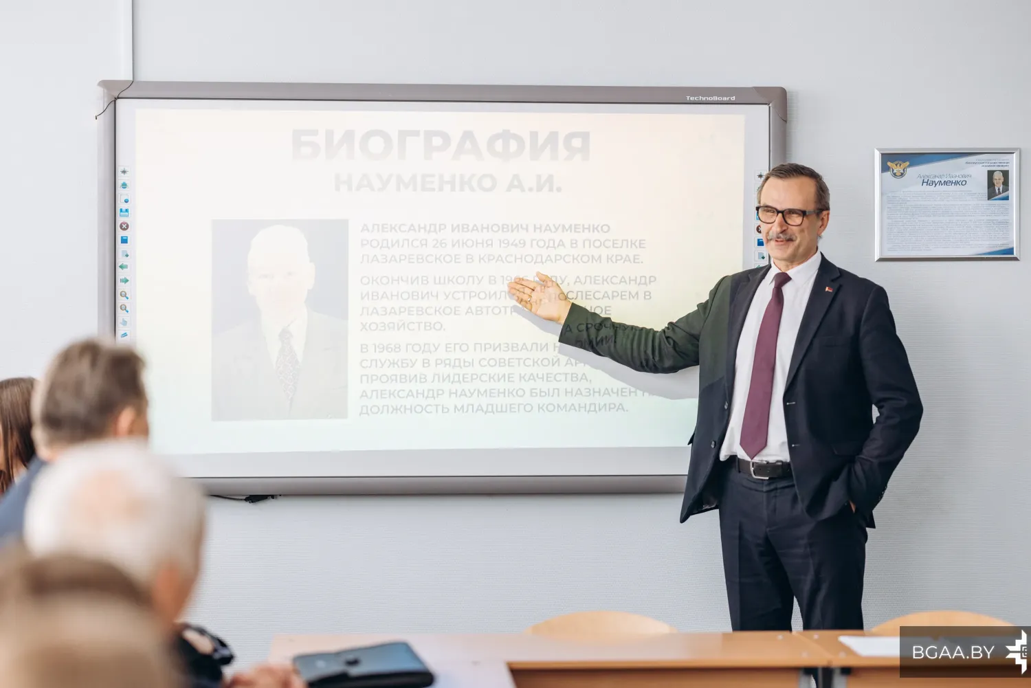 Сохраняя традиции, в БГАА состоялось открытие именной аудитории. В этом учебном году аудитория 5209 в пятом учебном корпусе названа в честь доцента кафедры социально-гуманитарных дисциплин Александра Ивановича Науменко. Почитать о жизненном пути Александра Ивановича можно на нашем сайте.