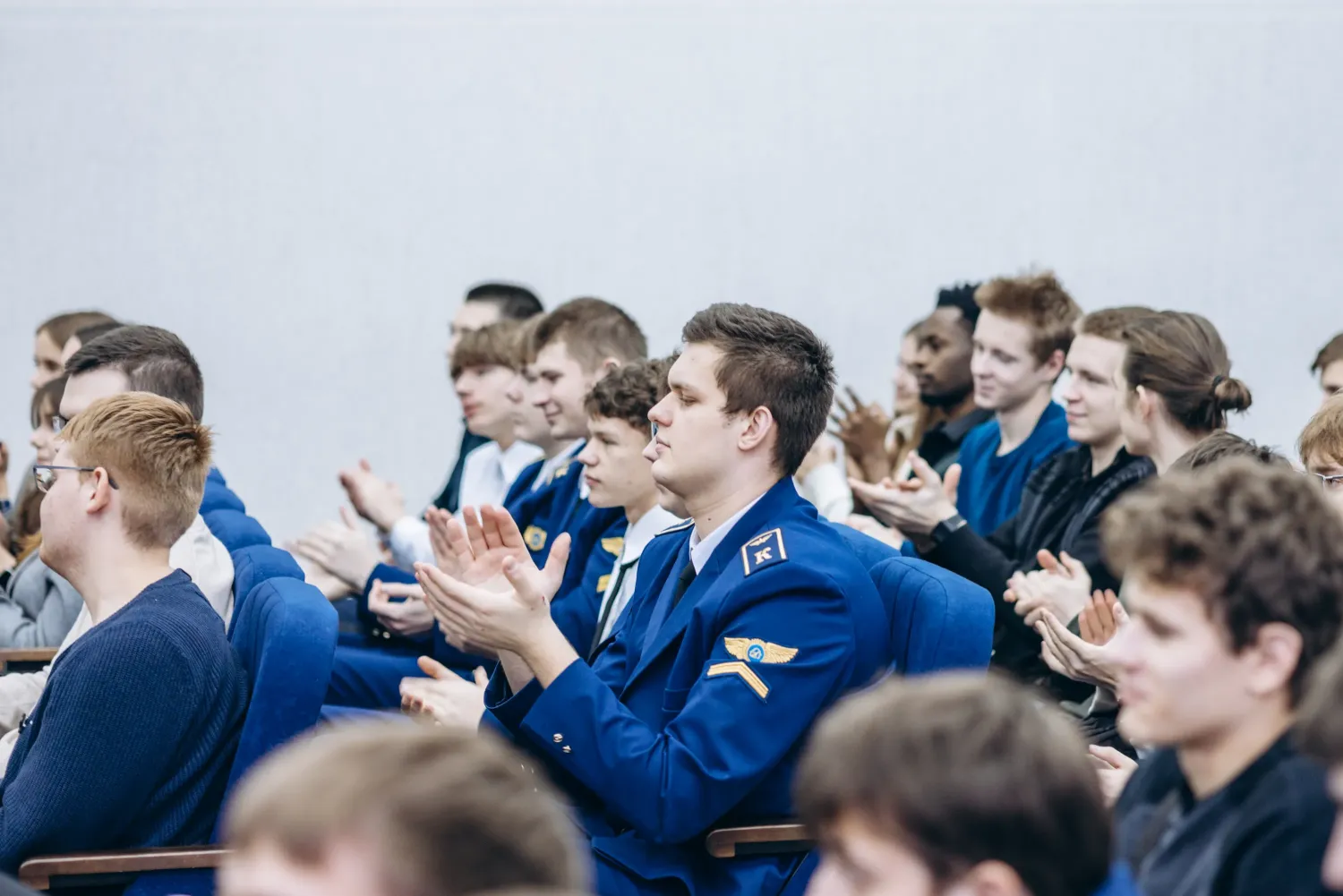 В день встречи с курсантами БГАА артист не только поделился с курсантами историей своего становления, но и дал небольшой концерт, включив в программу популярные современные треки и песни собственного сочинения.