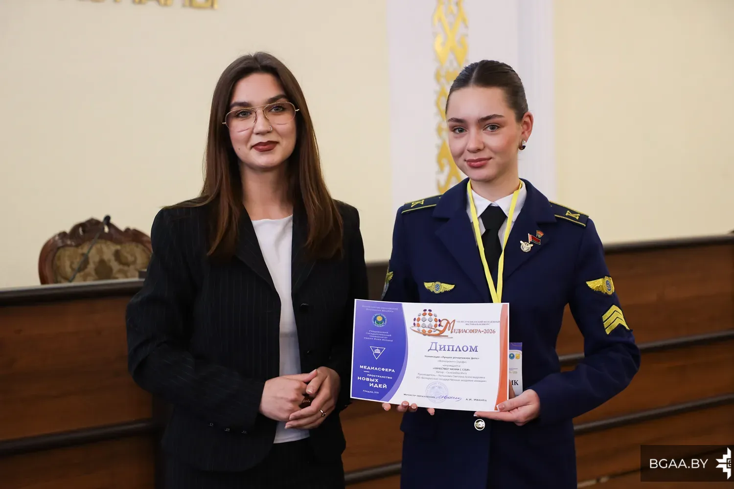 Курсант отделения среднего специального образования Белорусской государственной академии авиации Инга Селезнева приняла участие в VIII Республиканском молодежном фестивале-конкурсе «Медиасфера-2026». В этом году на конкурс было подано более 300 проектов, из которых в финал вышли 70.