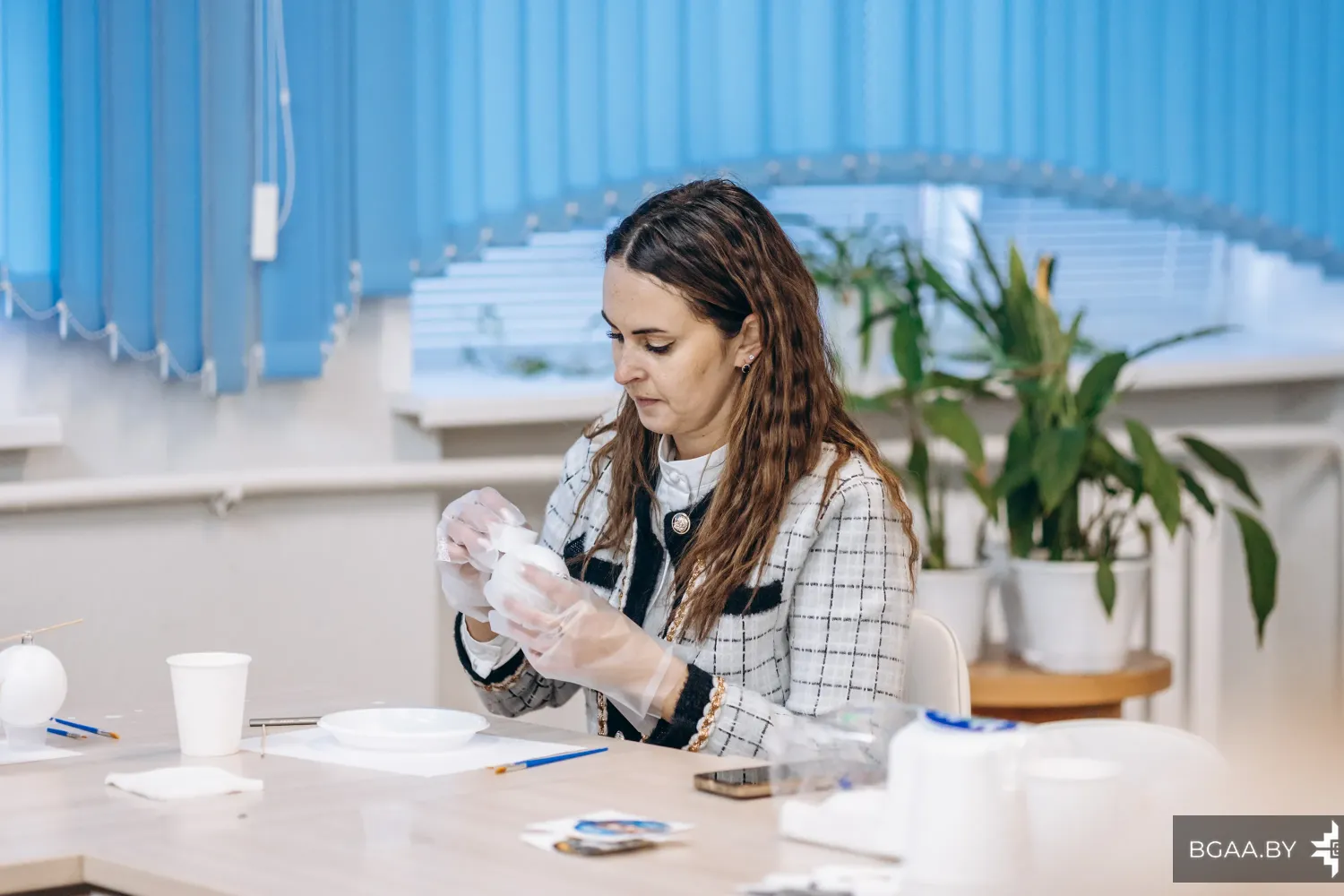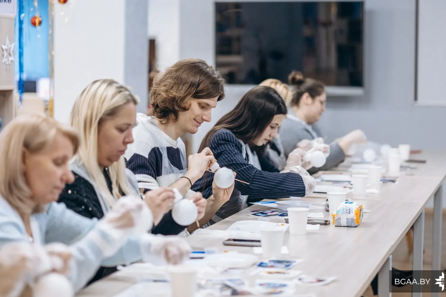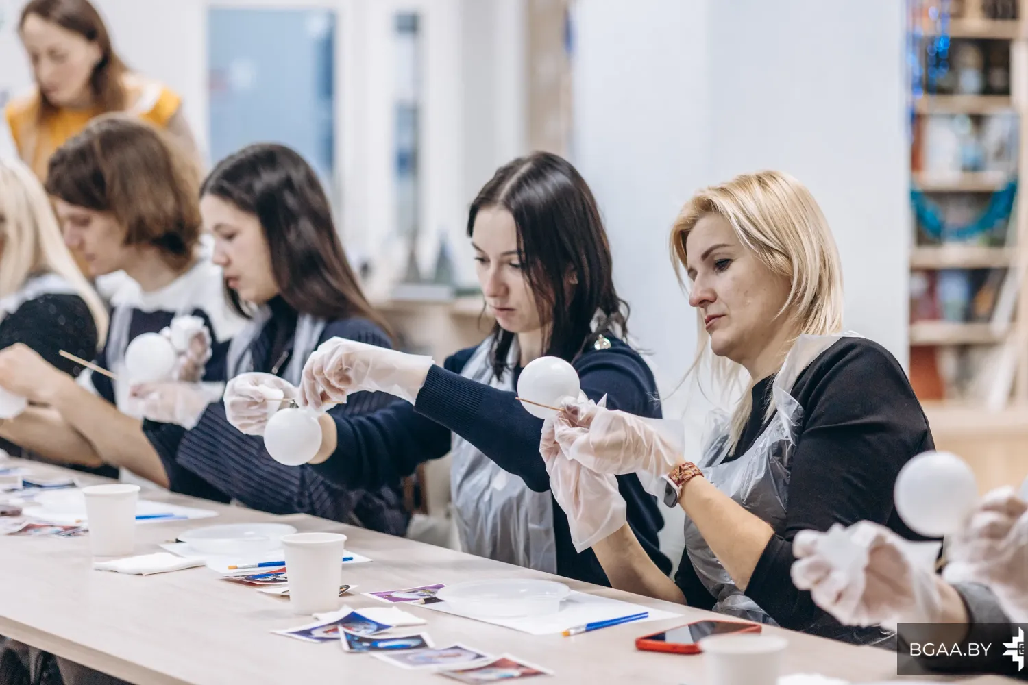 Для работников Белорусской государственной академии авиации и членов первичной профсоюзной организации БГАА был организован увлекательный мастер-класс по художественной росписи новогодних шаров.