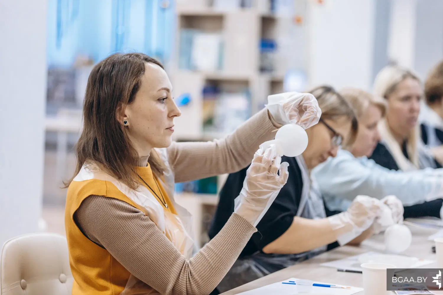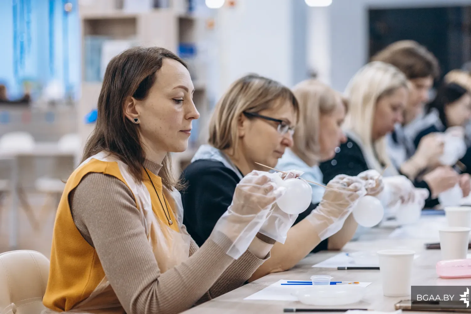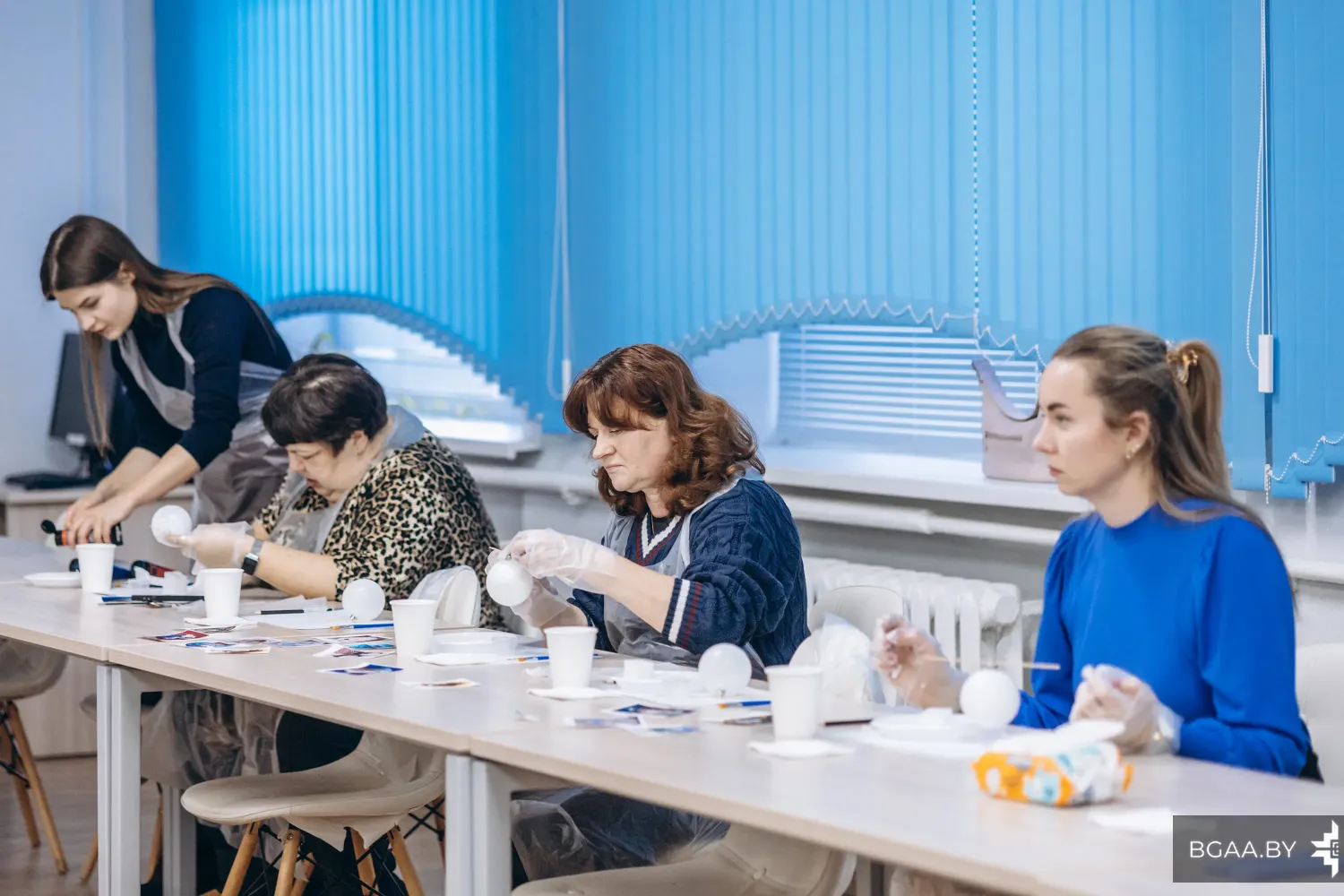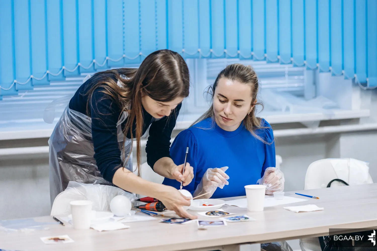 Для работников Белорусской государственной академии авиации и членов первичной профсоюзной организации БГАА был организован увлекательный мастер-класс по художественной росписи новогодних шаров.