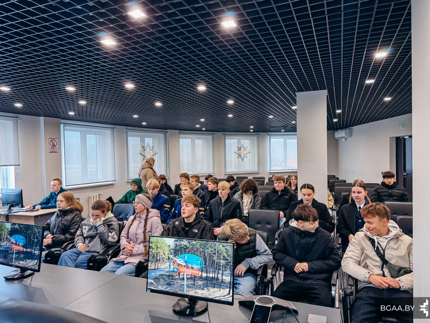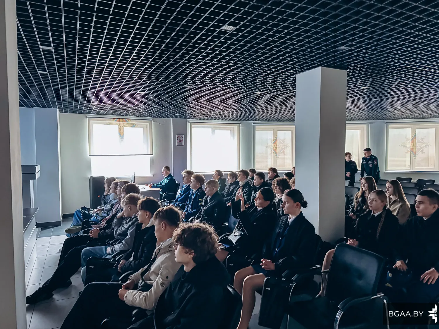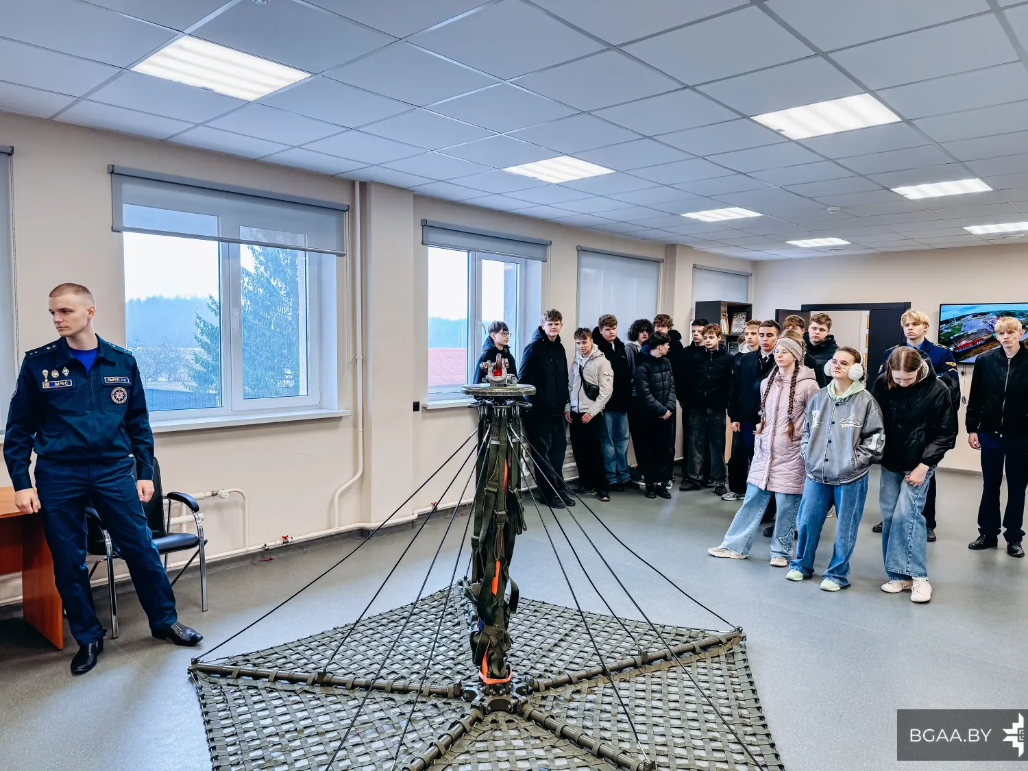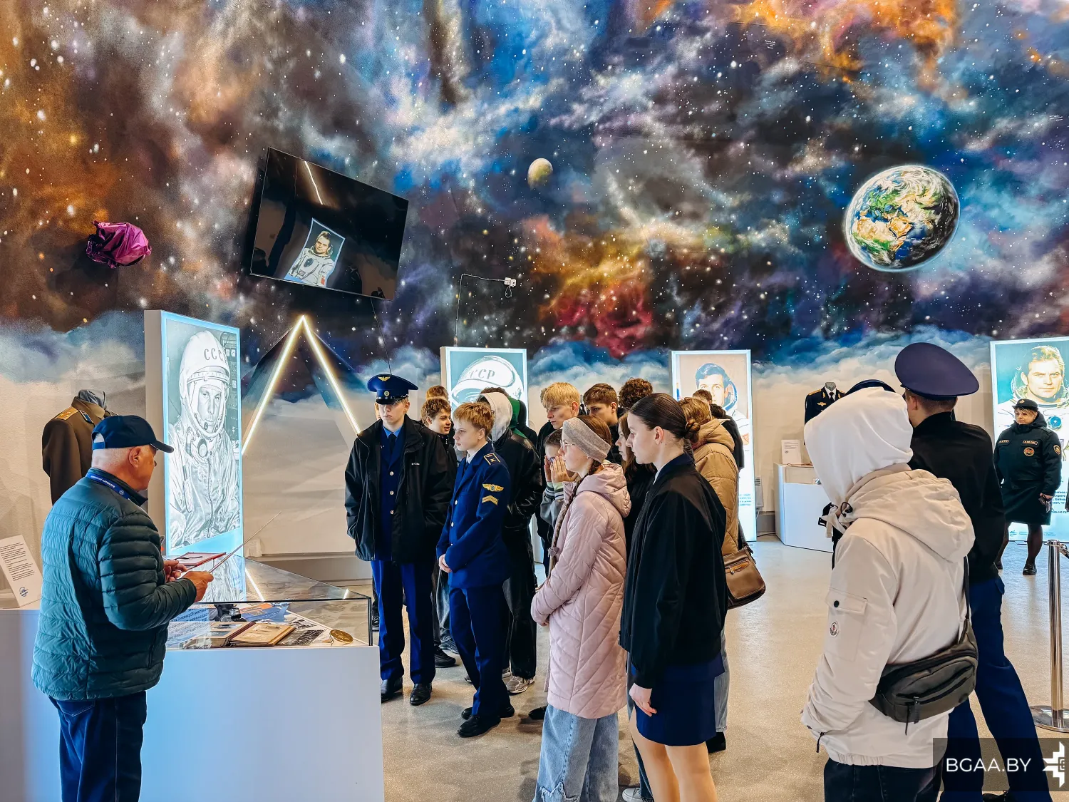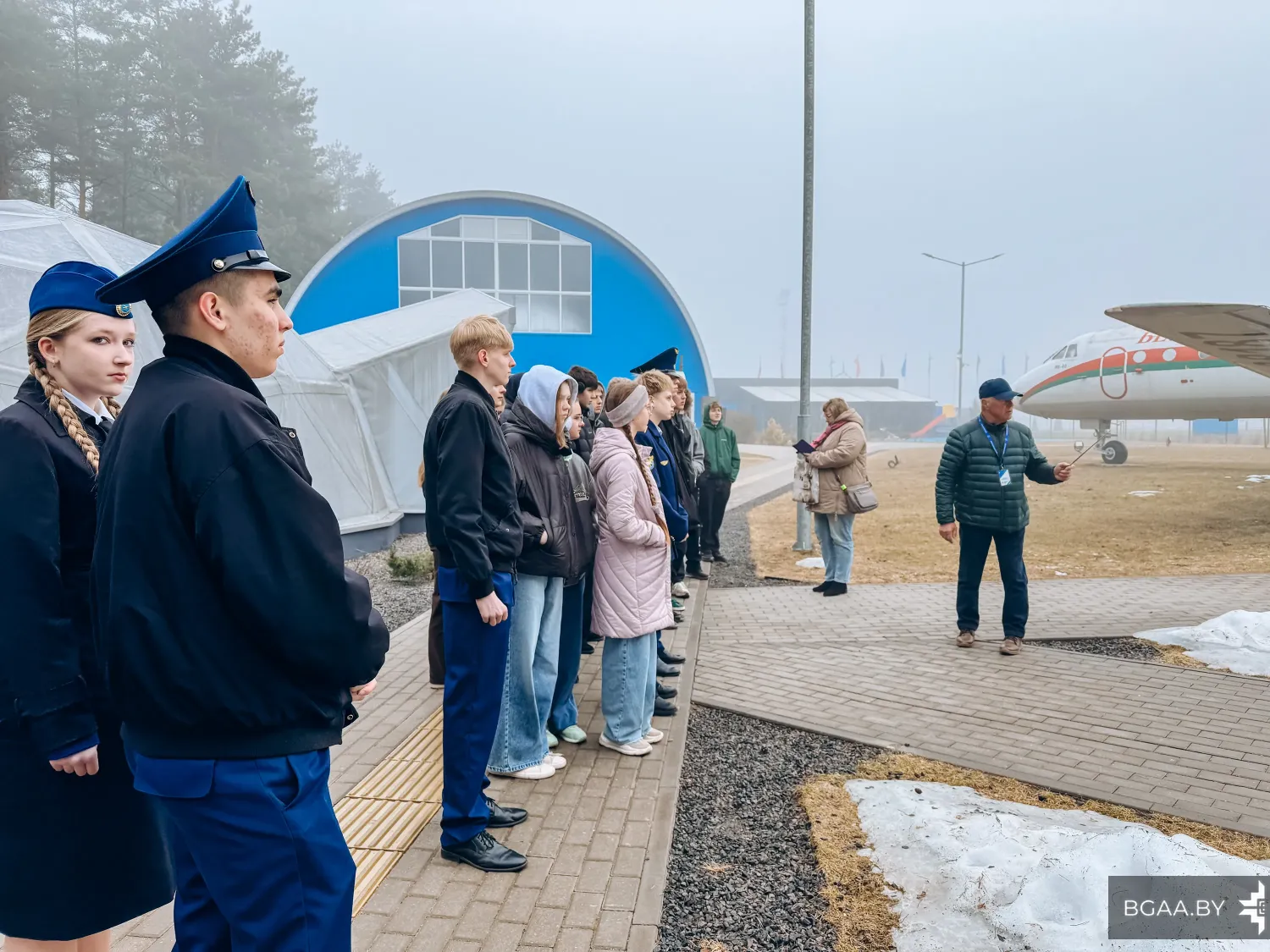 В рамках сотрудничества Белорусской государственной академии авиации с учреждениями общего среднего образования состоялась экскурсия для учащихся ГУО «Средняя школа №14 г. Молодечно», ГУО «Средняя школа № 1 г. Воложина» и ГУО «Средняя школа №2 г. Столбцы». В экскурсии также приняли участие курсанты отделения среднего специального образования БГАА.