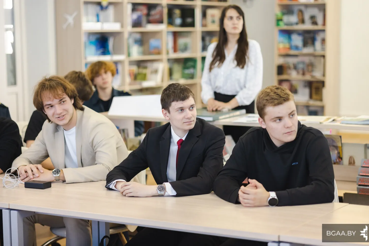 В читальном зале библиотеки Белорусской государственной академии авиации прошла информационно-просветительная беседа «Семейные ценности. Сила слова». На мероприятии присутствовали сотрудник Синодального отдела по делам молодежи, представитель Белорусской православной церкви чтец Дионисий Терехин, председатель комиссии по региональной политике и взаимодействию с органами местного самоуправления Молодежного совета при Совете Республики Национального собрания Республики Беларусь Евгений Пунинский, а также курсанты отделения среднего специального образования и факультета гражданской авиации БГАА.