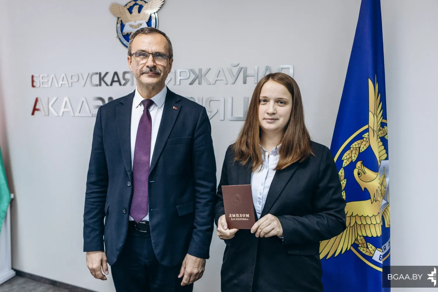 В рамках совета прошло награждение сотрудников БГАА. Ректор Игорь Георгиевич Яцкевич поздравил заместителя декана по идеологической и воспитательной работе БГАА Анну Михайловну Мацкевич и старшего преподавателя кафедры естественнонаучных и общепрофессиональных дисциплин Екатерину Викторовну Куриленко с успешным завершением аспирантуры.