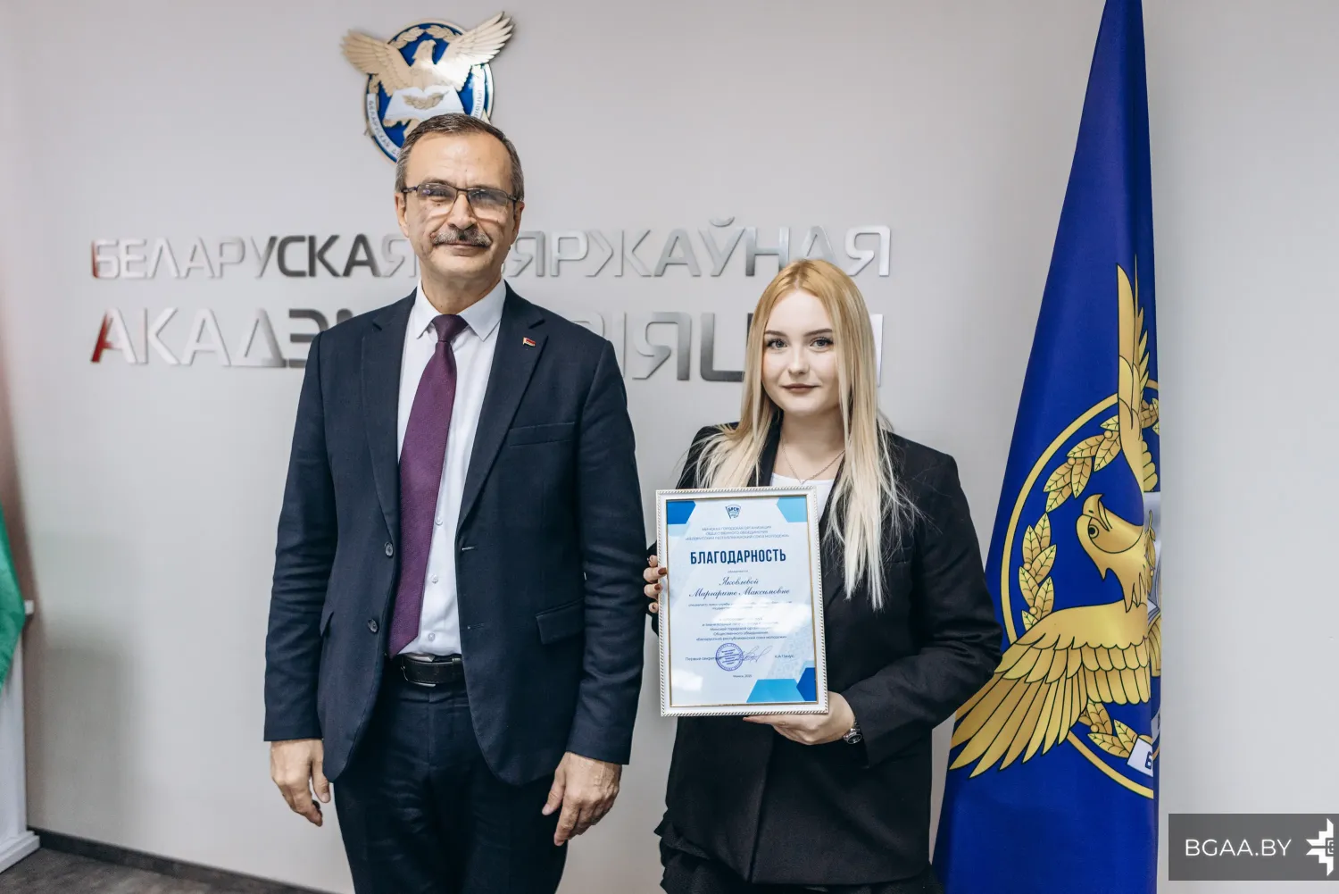 Благодарностью Минской городской организации общественного объединения «Белорусский республиканский союз молодежи за добросовестный труд и значительный вечный вклад в развитие Минской городской организации общественного объединения Белорусский республиканский союз молодежи» отмечена специалист пресс-службы БГАА Маргарита Максимовна Яковлева.