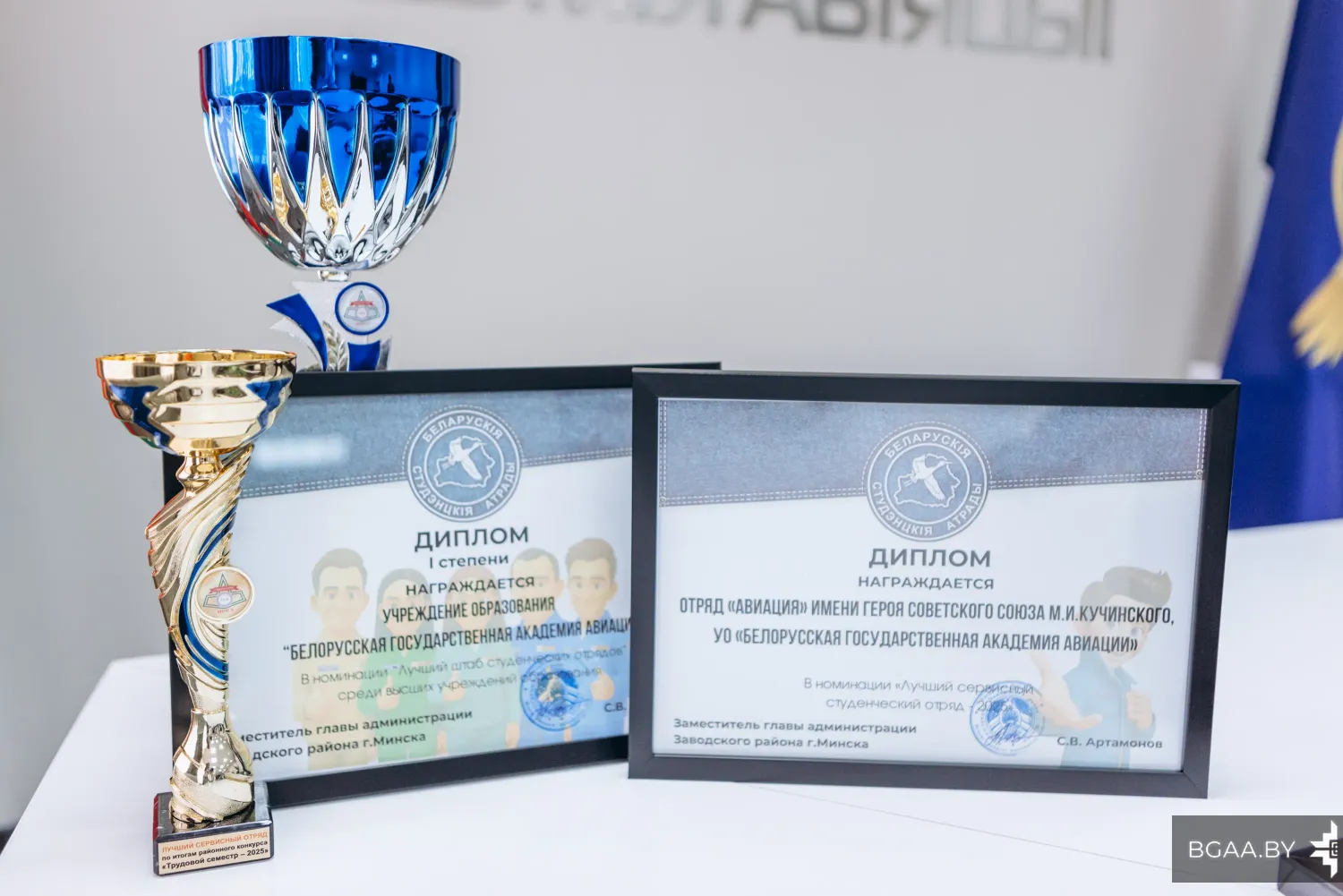 Также ректор отметил, что при объявлении звездных отрядов 2025 года в профессиональных номинациях на закрытии трудового семестра, среди лучших оказался студенческий отряд «Авиация» им. М. И. Кучинского – сервисный отряд БГАА.
