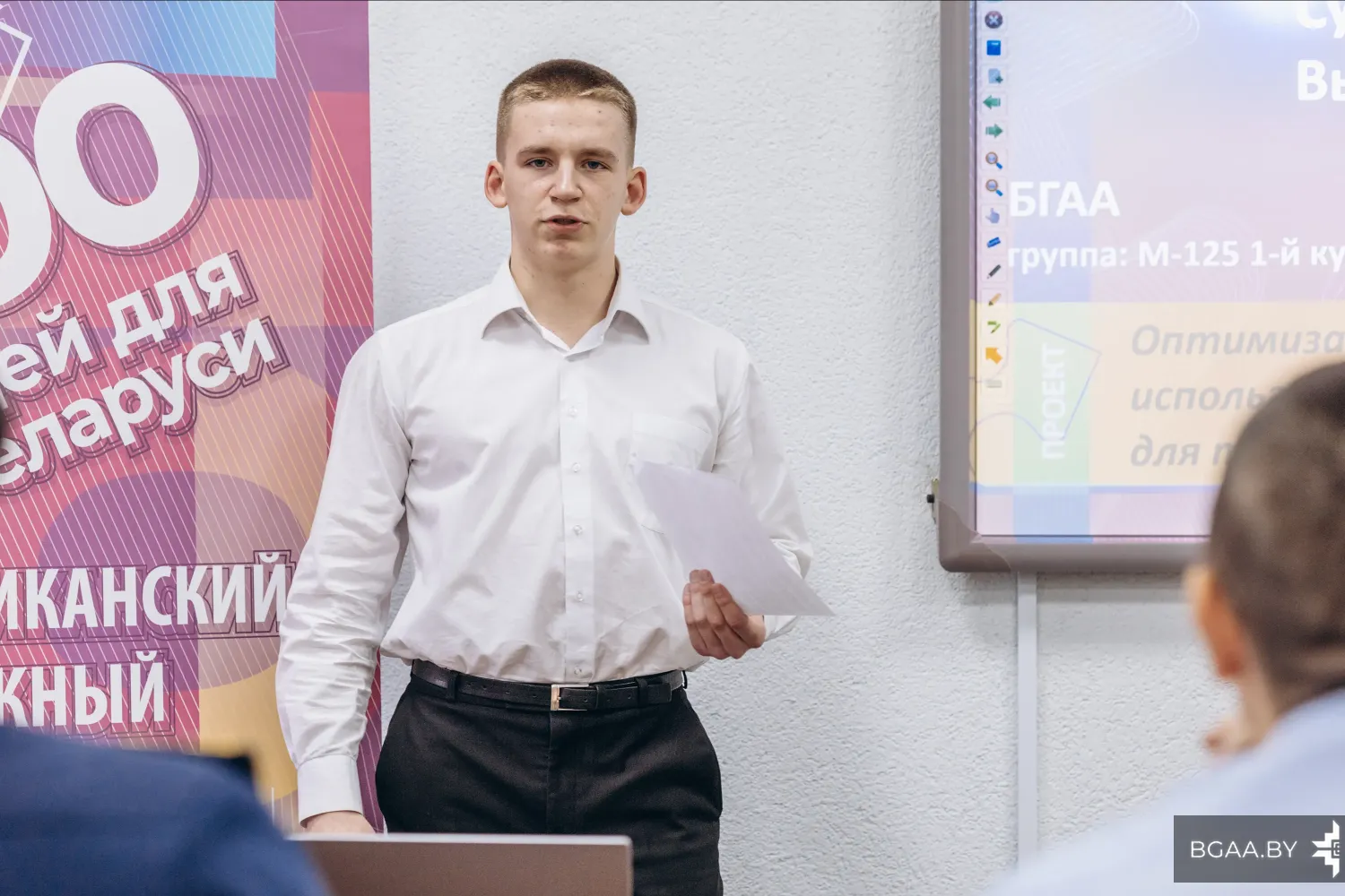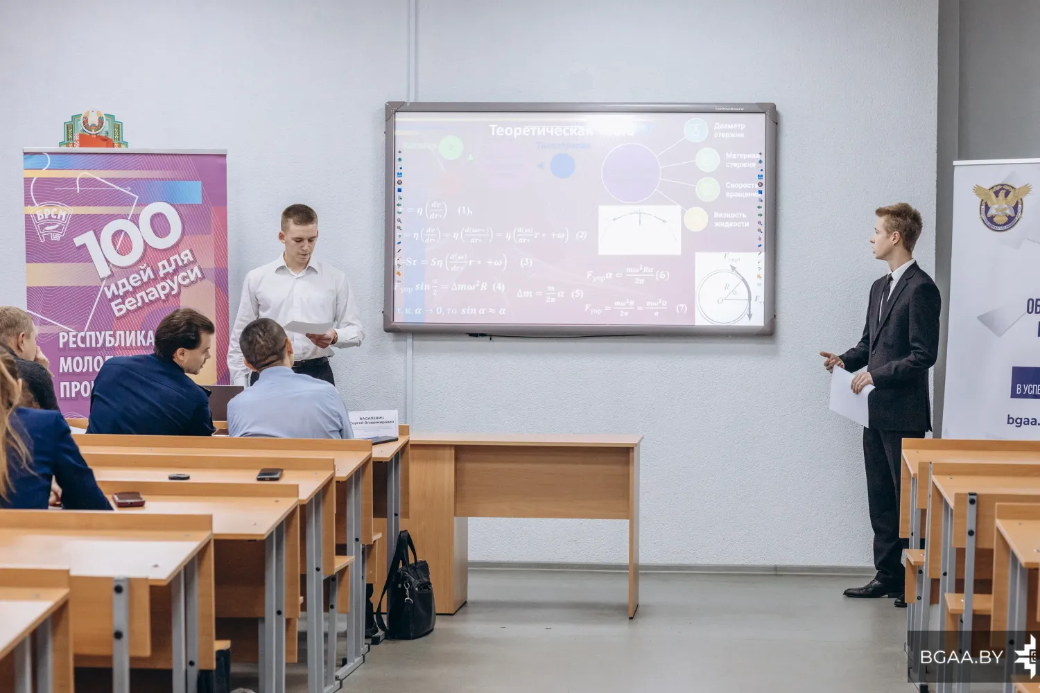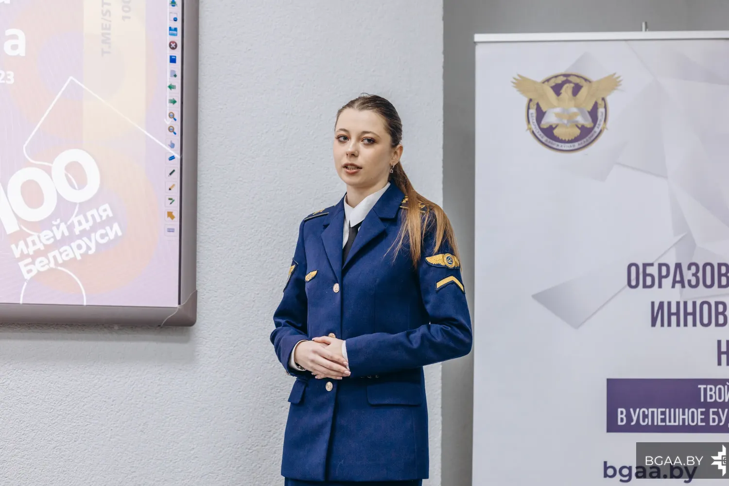 В Белорусской государственной академии авиации прошел отборочный академический этап республиканского конкурса «100 идей для Беларуси». Курсанты выступили с презентациями своих проектов перед комиссией. В состав комиссии входили эксперты и ученые из числа сотрудников БГАА под председательством начальника АНТЦ – председателя Совета молодых ученых академии. Члены комиссии заслушали 7 проектов и отобрали лучшие на межуниверситетский этап.