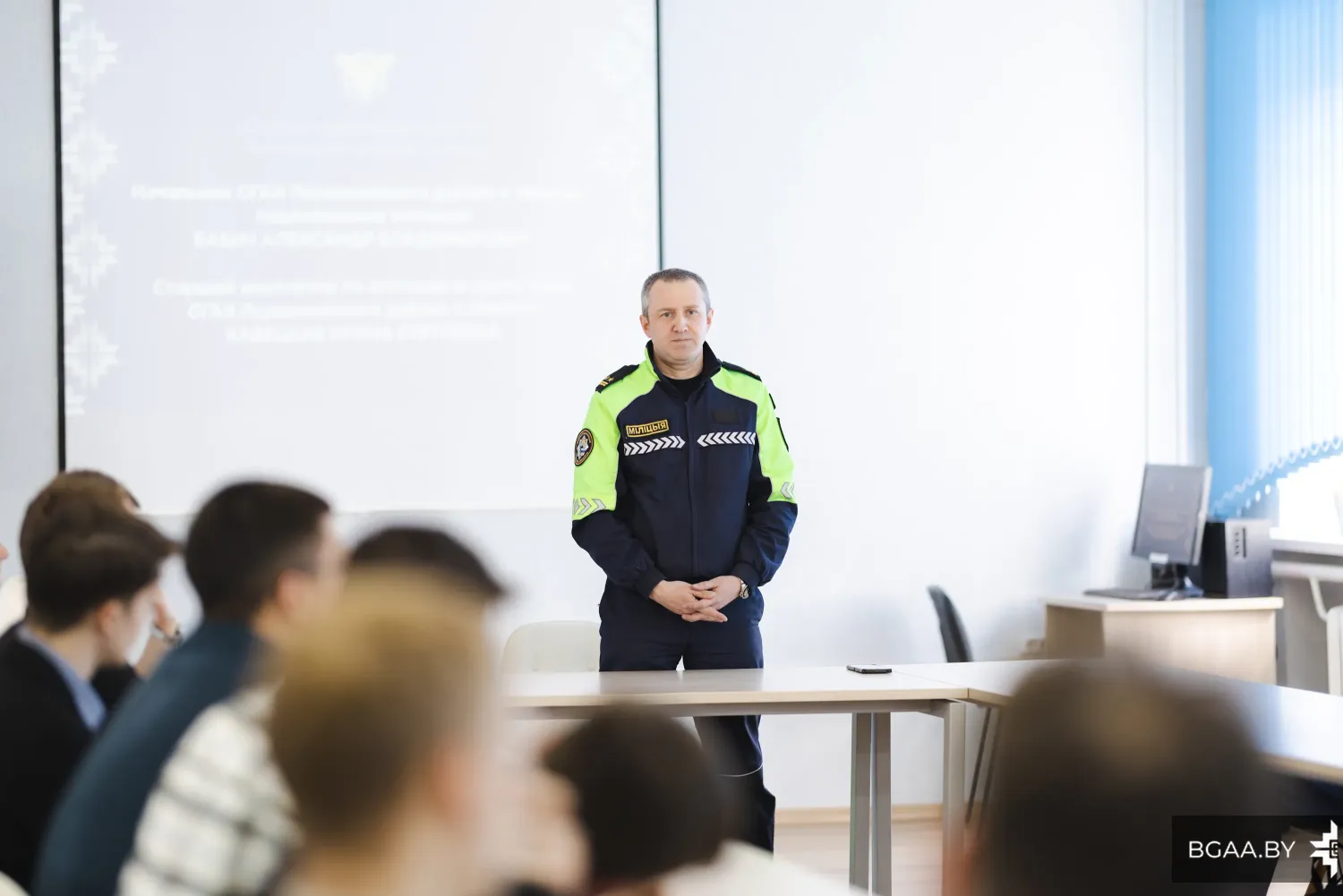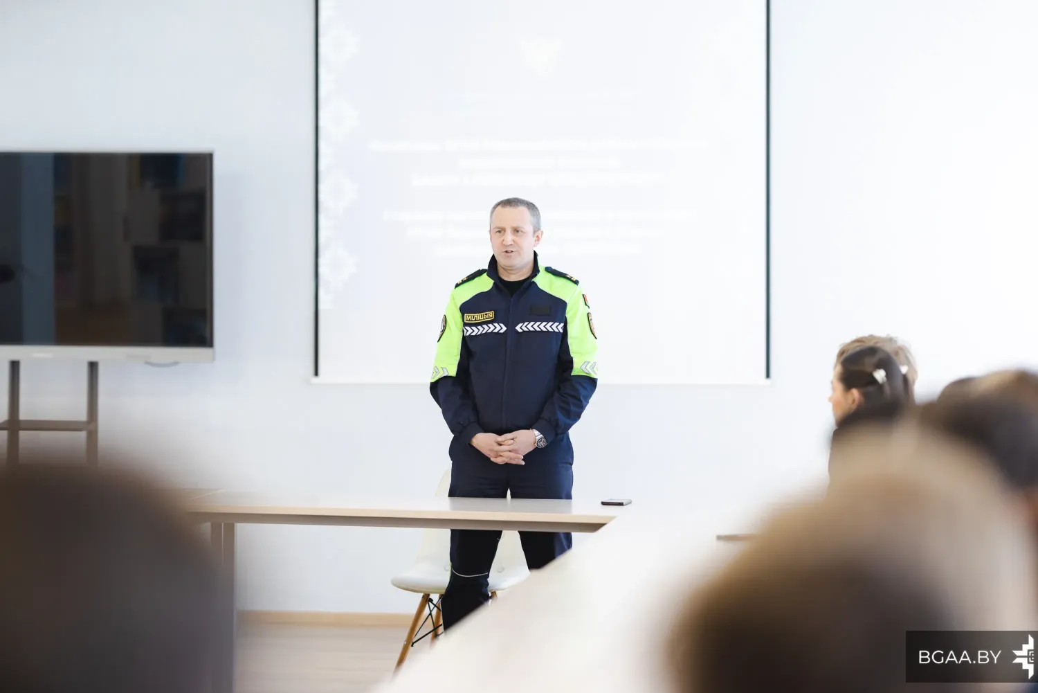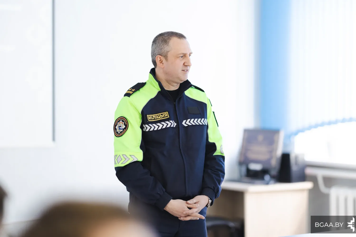 В Белорусской государственной академии авиации состоялось выступление, направленное на пропаганду безопасного передвижения на средствах персональной мобильности. Мероприятие провел заместитель начальника ОГАИ Заводского РУВД подполковник милиции Юрий Сидор.