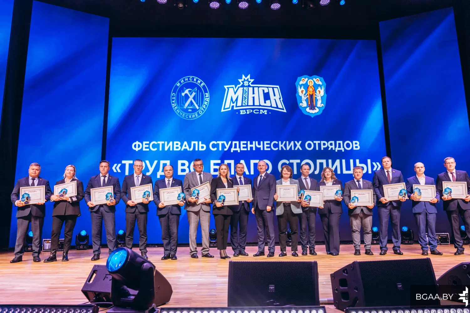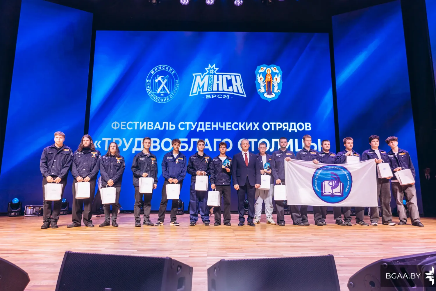 Председатель Мингорисполкома Владимир Кухарев подвел итоги трудового семестра и вручил переходящее знамя лучшему студенческому отряду Минска.