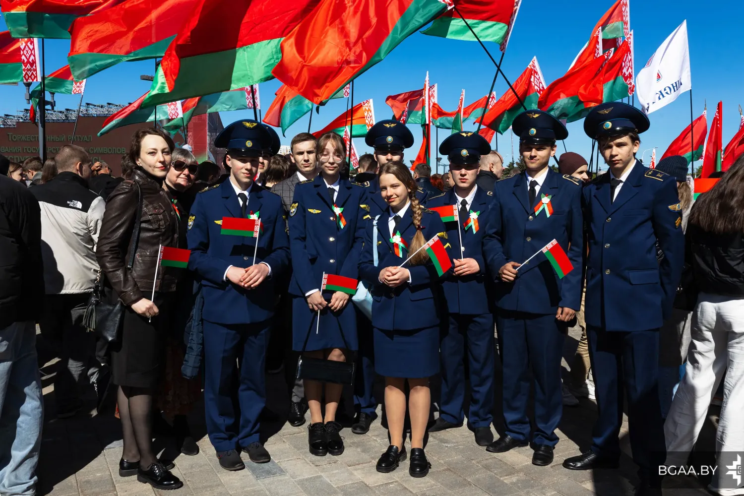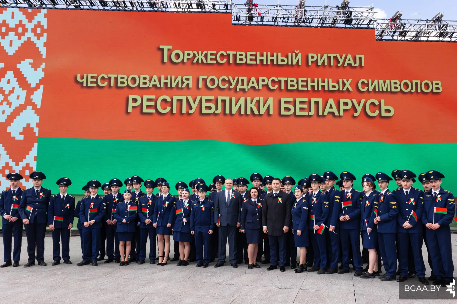 В главный торжественный день представители БГАА приняли участие торжественном ритуале чествования государственных символов с участием Президента Республики Беларусь Александра Григорьевича Лукашенко.