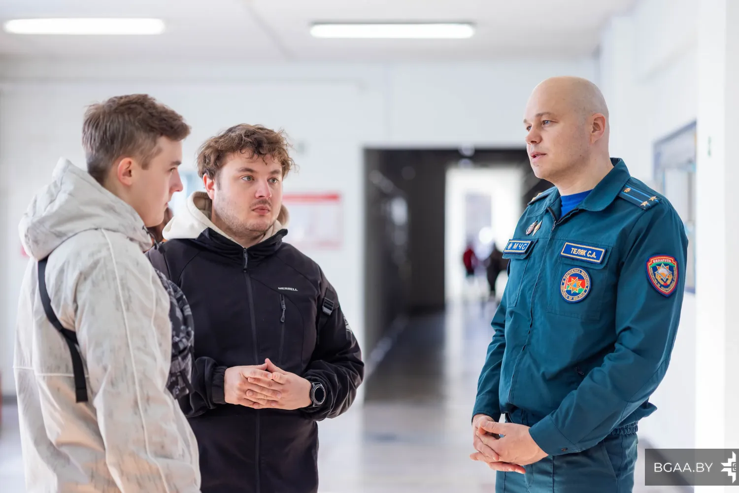 Также в БГАА присутствовали представители организаций – заказчиков кадров: начальник отдела кадров ОАО «558 авиационный ремонтный завод» Николай Николаевич Кмита и подполковник внутренней службы, начальник сектора идеологии и кадрового обеспечения ГААСУ «АВИАЦИЯ» МЧС Республики Беларусь Сергей Андреевич Теляк.