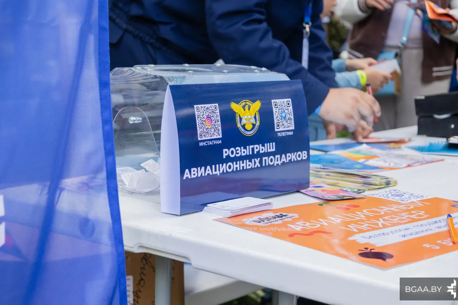На локации БГАА работали несколько интерактивных точек. Маленькие авиационные специалисты и их родители смогли принять участие в викторине, с помощью которой пополнили свою багаж знаний в теоретической части в области авиации. Большим интересом пользовалась игра «Собери пилота в рейс», в которой среди большого перечня настоящих авиационных предметов, участникам игры требовалось понять, что именно пилоты берут с собой в полет.