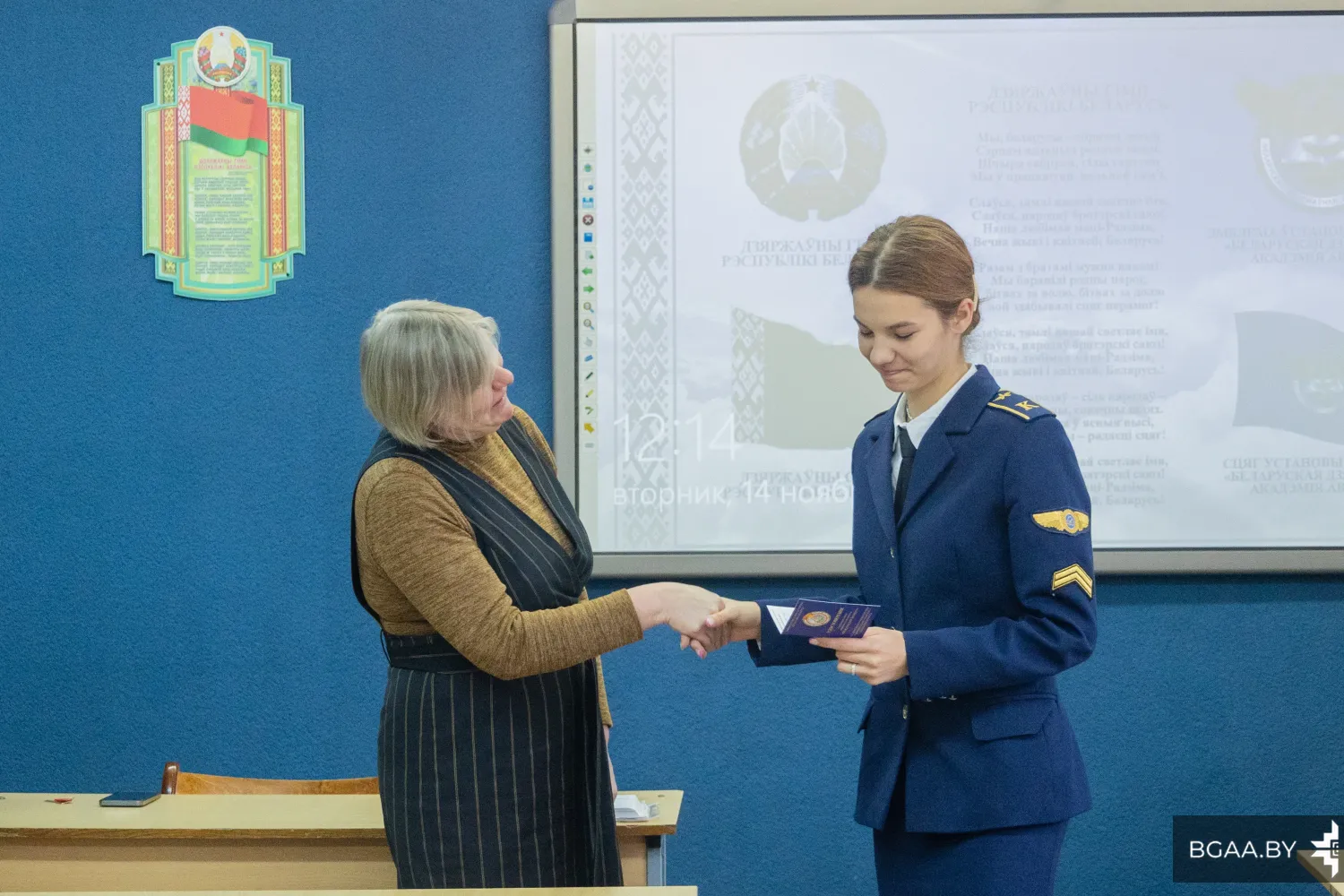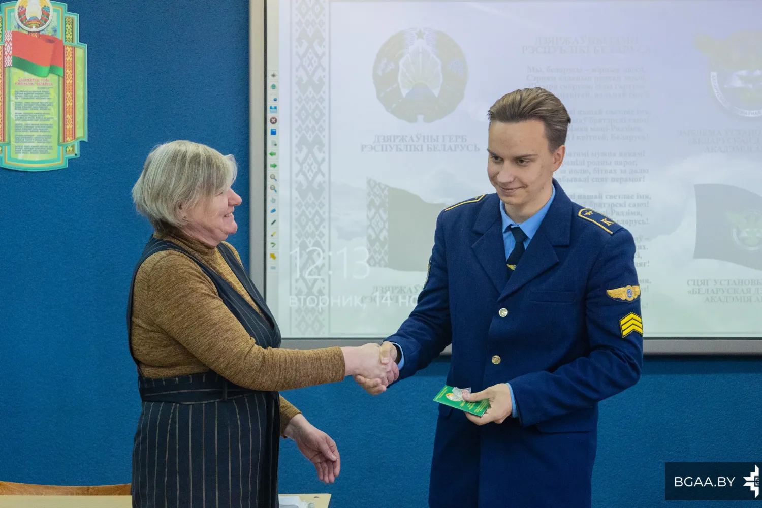 Из рук сотрудников БГАА ребята получили заслуженные награды: курсанты Елизавета Сучкевич и Алексей Касаревич были удостоены нагрудных значков бронзового достоинства «Алiмпiйскiя надзеi» Государственного физкультурно-оздоровительного комплекса III ступени «Физическое совершенство», а курсант Дарья Вареникова – нагрудного значка бронзового достоинства «Спартыўная змена» Государственного физкультурно-оздоровительного комплекса II ступени «Спортивная смена».