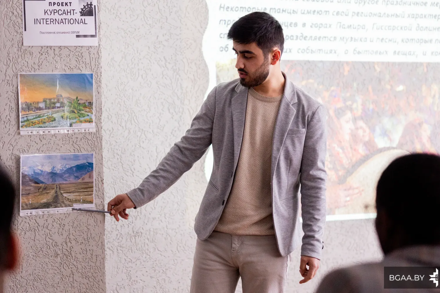 В ходе мероприятия, курсант из Беларуси рассказала о богатстве и многообразии нашей страны, а иностранные курсанты из Конго, Кот-д’Ивуара, Таджикистана и Туркменистана представили свои страны. Ребята рассказали о культуре и особенностях, достопримечательностях, а также показали, насколько их страны богаты историко-культурным наследием.