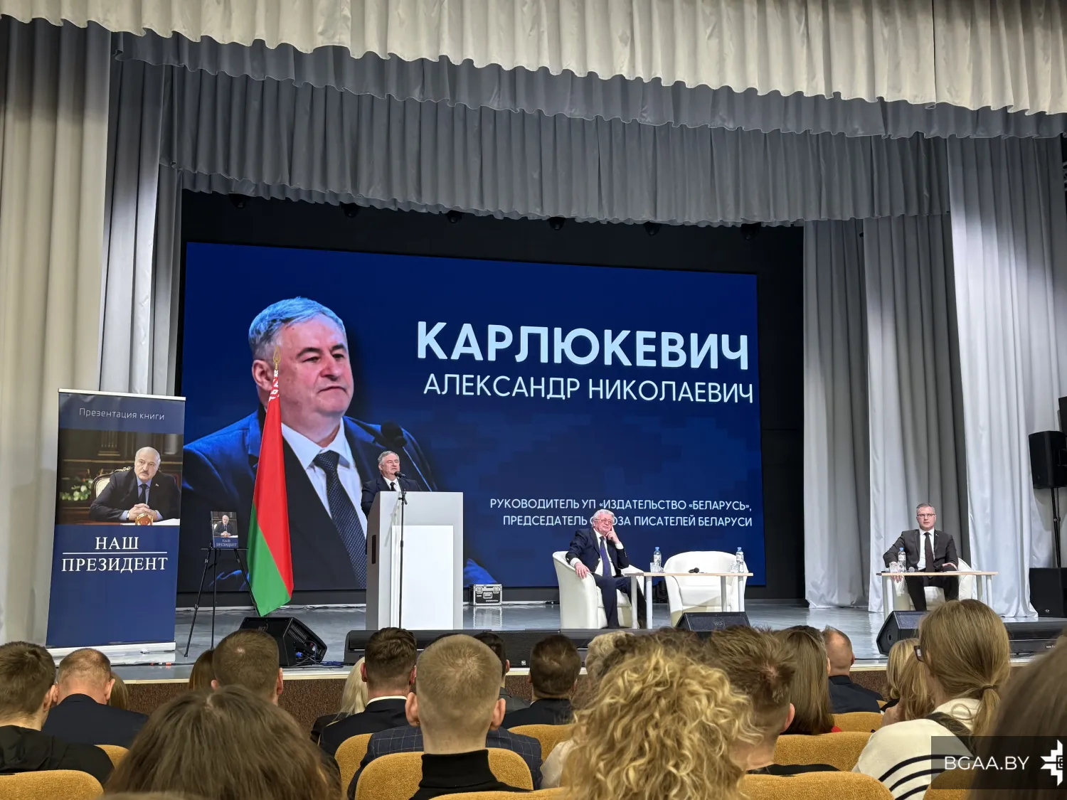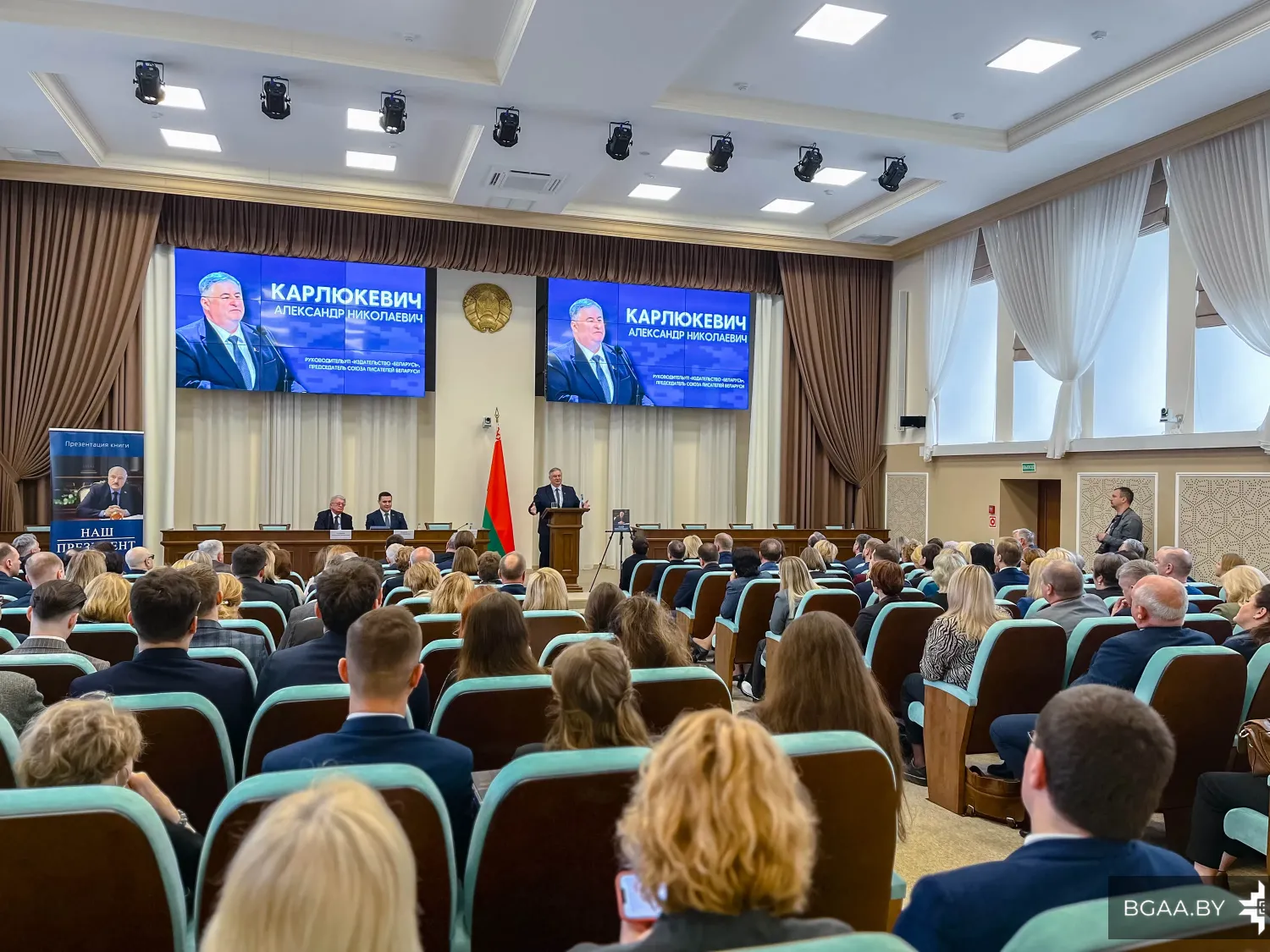 В мероприятии приняли участие представители авторского коллектива – доктор педагогических наук, профессор, заслуженный деятель науки Беларуси Александр Михайлович Радьков, руководитель УП «Издательство «Беларусь», председатель Союза писателей Беларуси Александр Николаевич Карлюкевич.