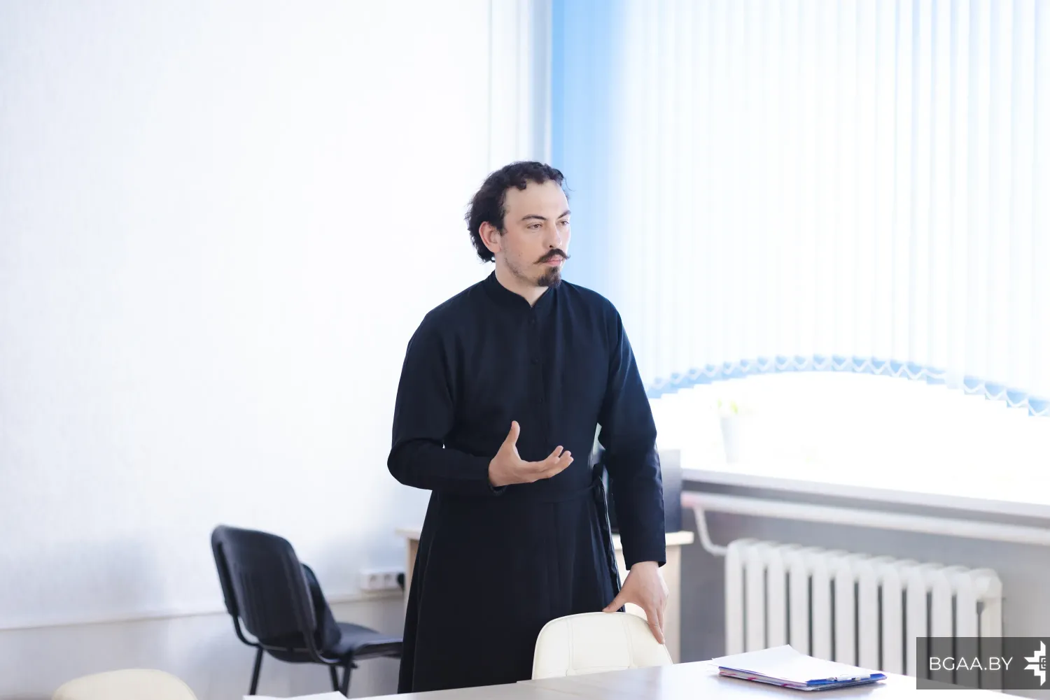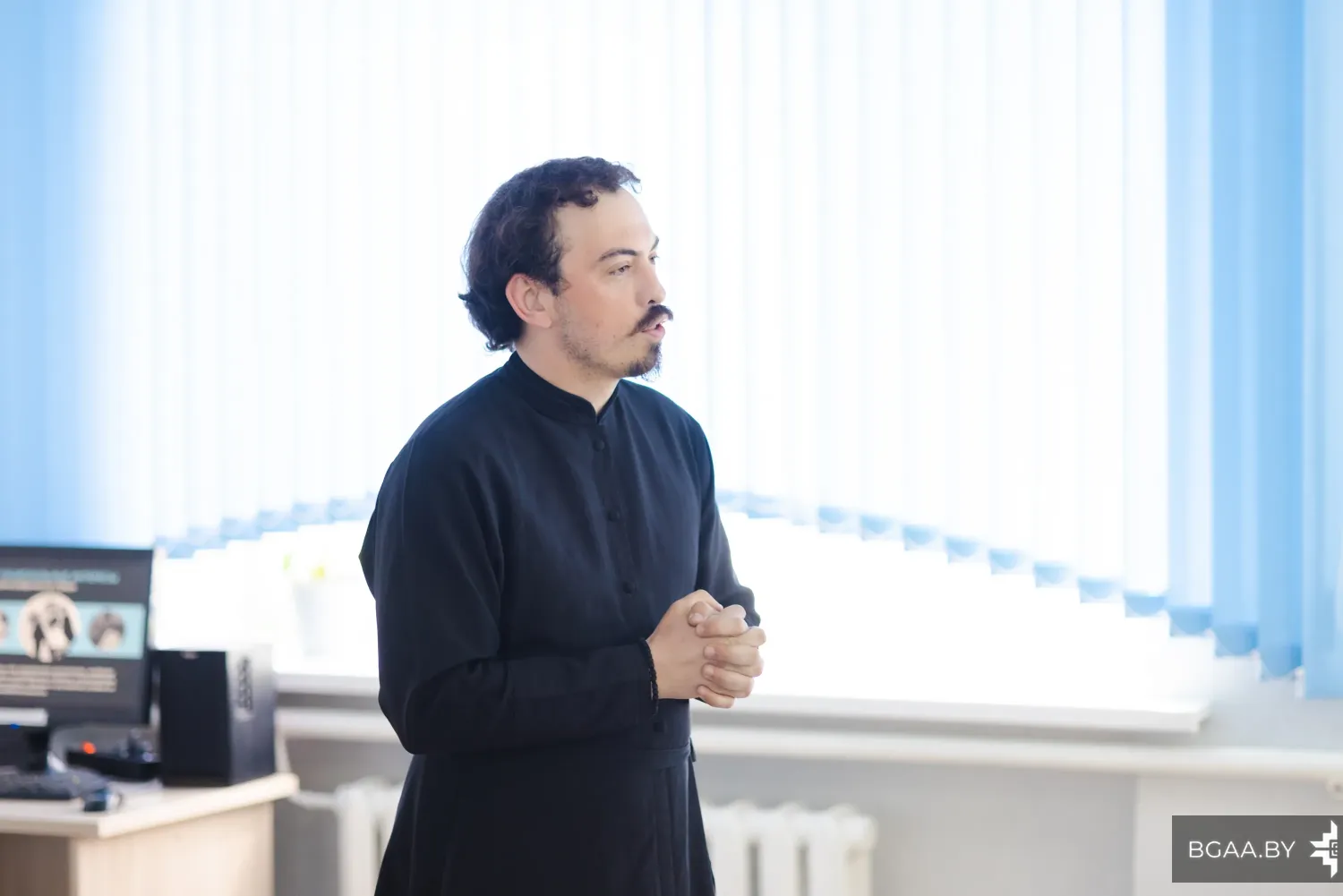В читальном зале библиотеки Белорусской государственной академии авиации прошла информационно-просветительная беседа «Семейные ценности. Сила слова». На мероприятии присутствовали сотрудник Синодального отдела по делам молодежи, представитель Белорусской православной церкви чтец Дионисий Терехин, председатель комиссии по региональной политике и взаимодействию с органами местного самоуправления Молодежного совета при Совете Республики Национального собрания Республики Беларусь Евгений Пунинский, а также курсанты отделения среднего специального образования и факультета гражданской авиации БГАА.