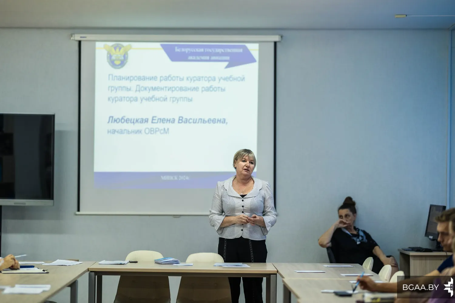 5 сентября в Белорусской государственной академии авиации прошел практико-ориентированный семинар для кураторов учебных групп факультета гражданской авиации и отделения среднего специального образования «Куратор учебной группы как субъект воспитательного пространства академии».