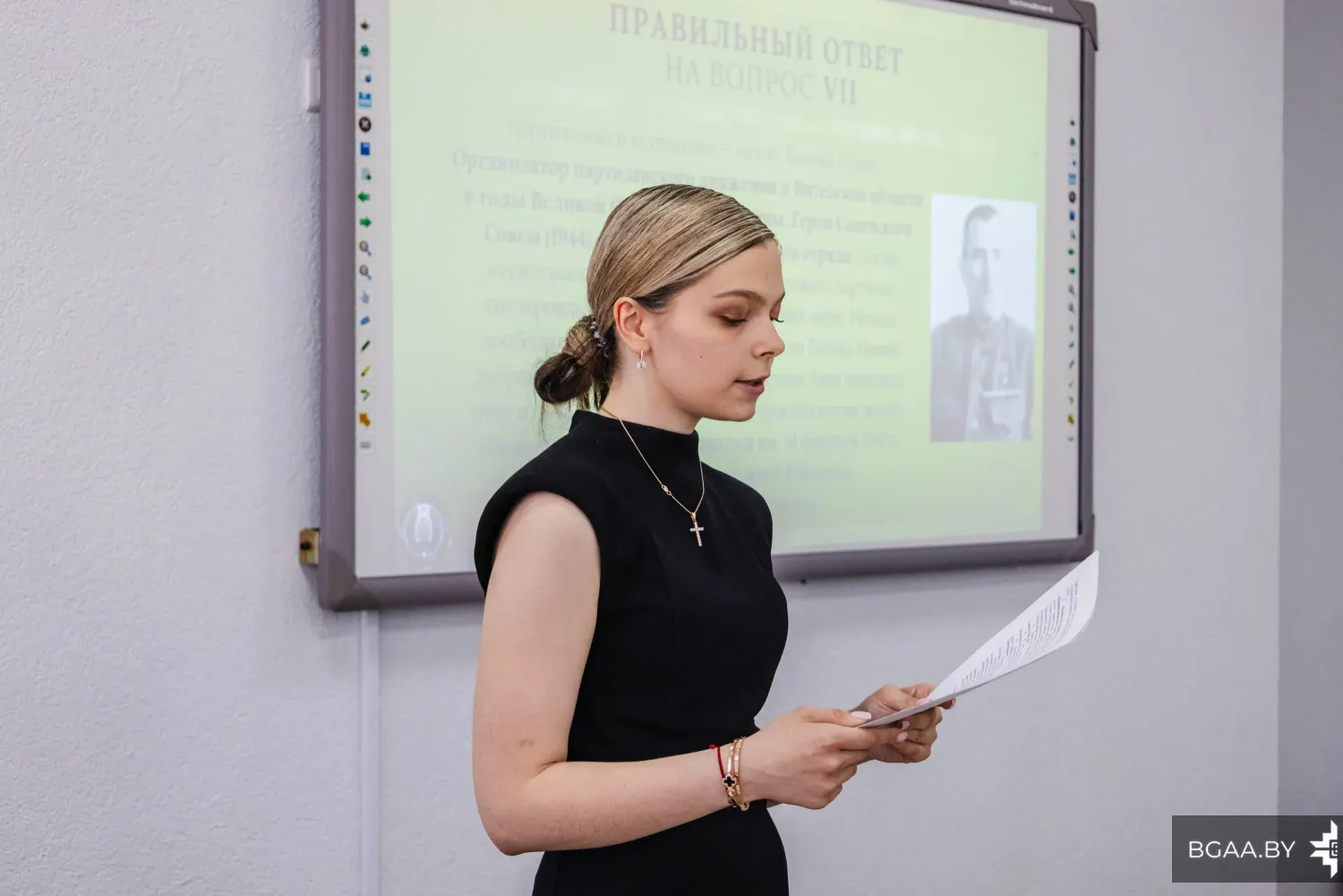 19 июня викторину с курсантами Белорусской государственной академии авиации провела председатель комиссии по международным делам Молодёжного парламента при Национальном собрании Республики Беларусь Алина Андреевна Ретькова.