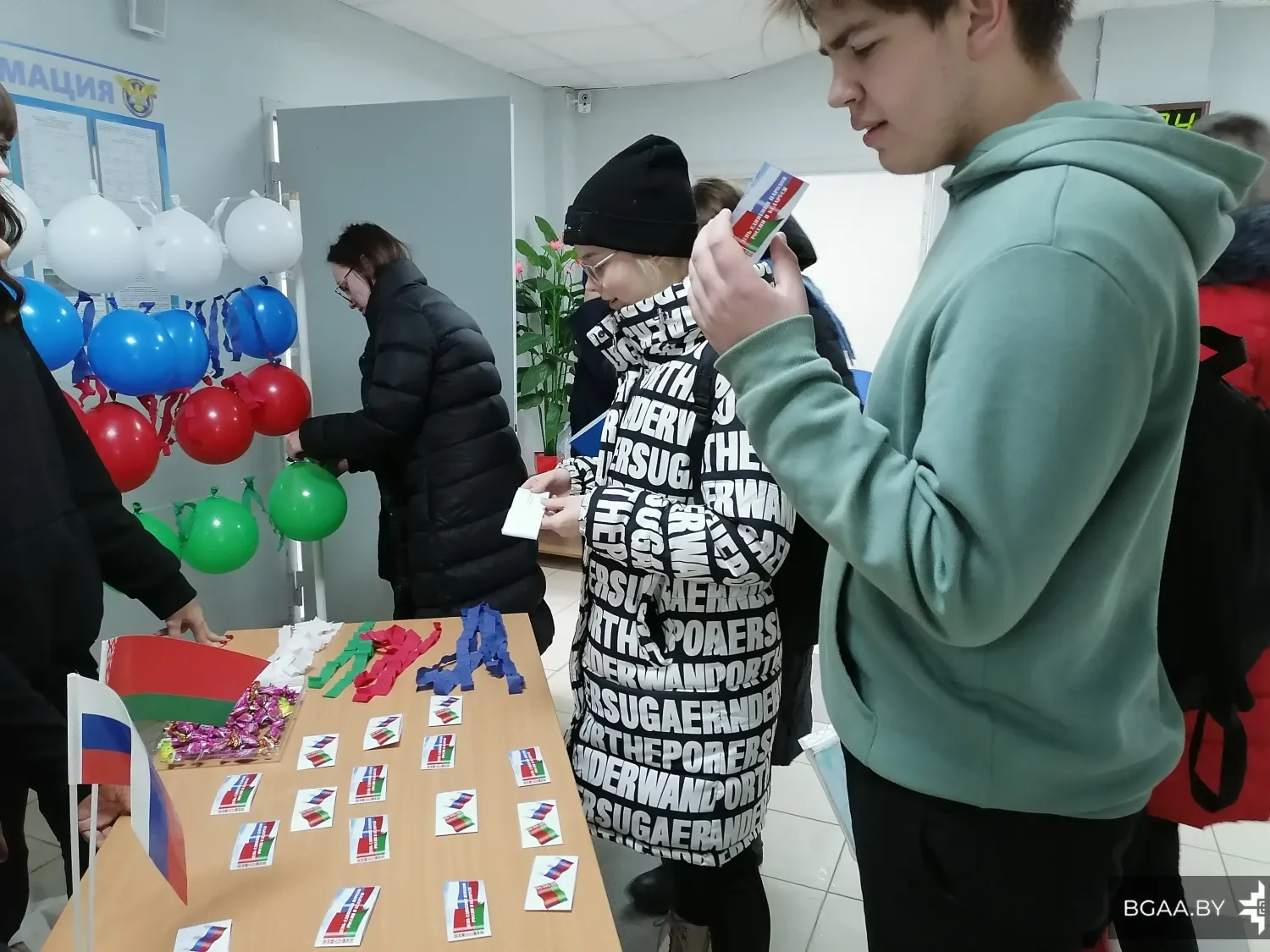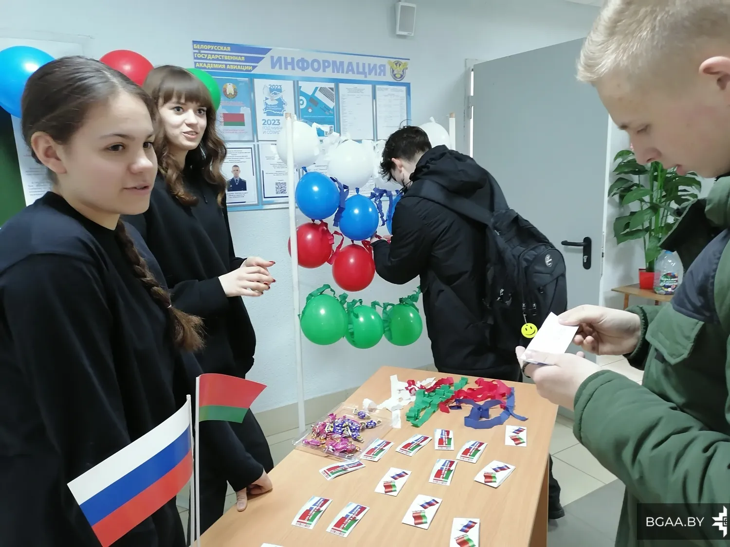 30 марта в преддверии важной исторической даты в общежитии №1 Белорусской государственной академии авиации прошла викторина, посвященная Дню единения народов Беларуси и России. Курсанты активно принимали участие в мероприятии, отвечая на вопросы, которые подготовил для них курсантский совет общежития, а также прикрепляли ленточки соответствующих цветов на импровизированный флаг «Содружества».