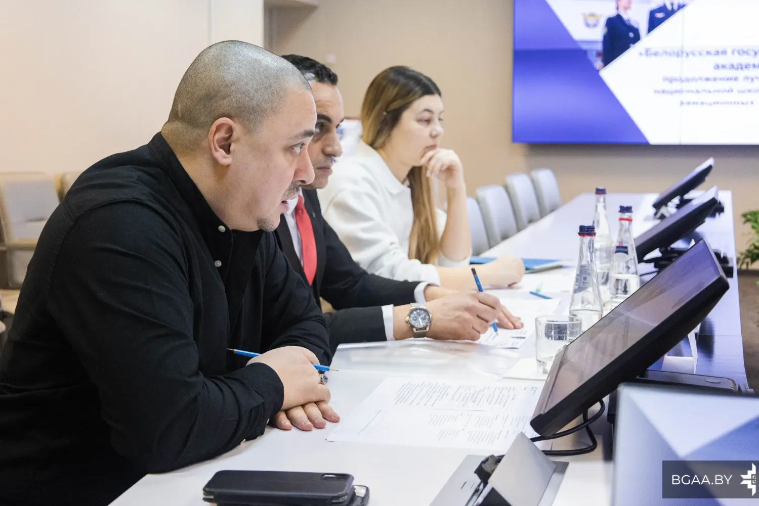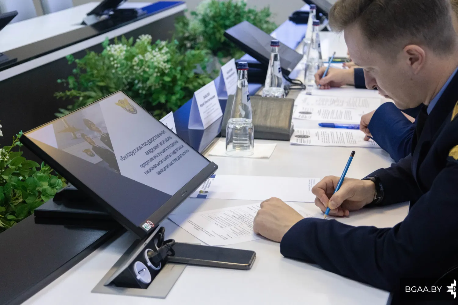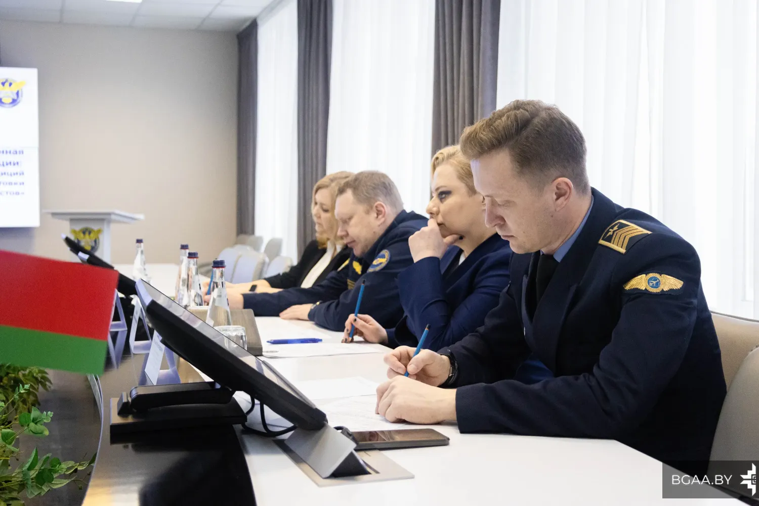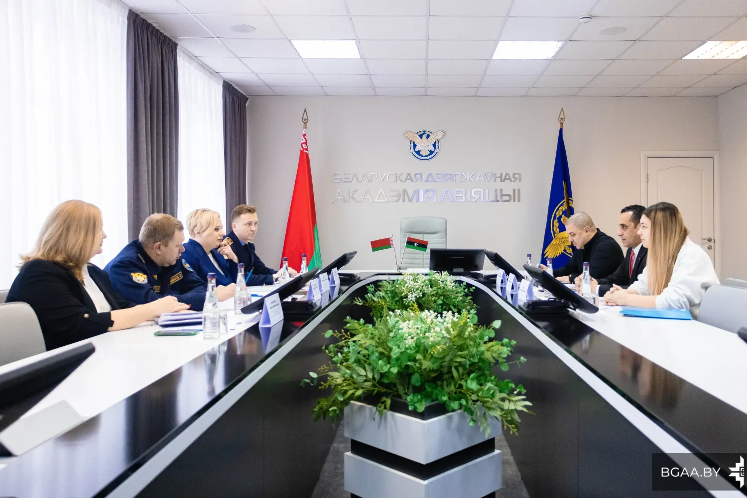 Со стороны БГАА во встрече приняли участие директор института повышения квалификации и переподготовки Мария Константиновна Завалей, декан факультета гражданской авиации Захар Владимирович Машарский, заведующий отделением среднего специального образования Максим Александрович Лисовский и начальник отдела международных связей Алина Владимировна Гончарова.