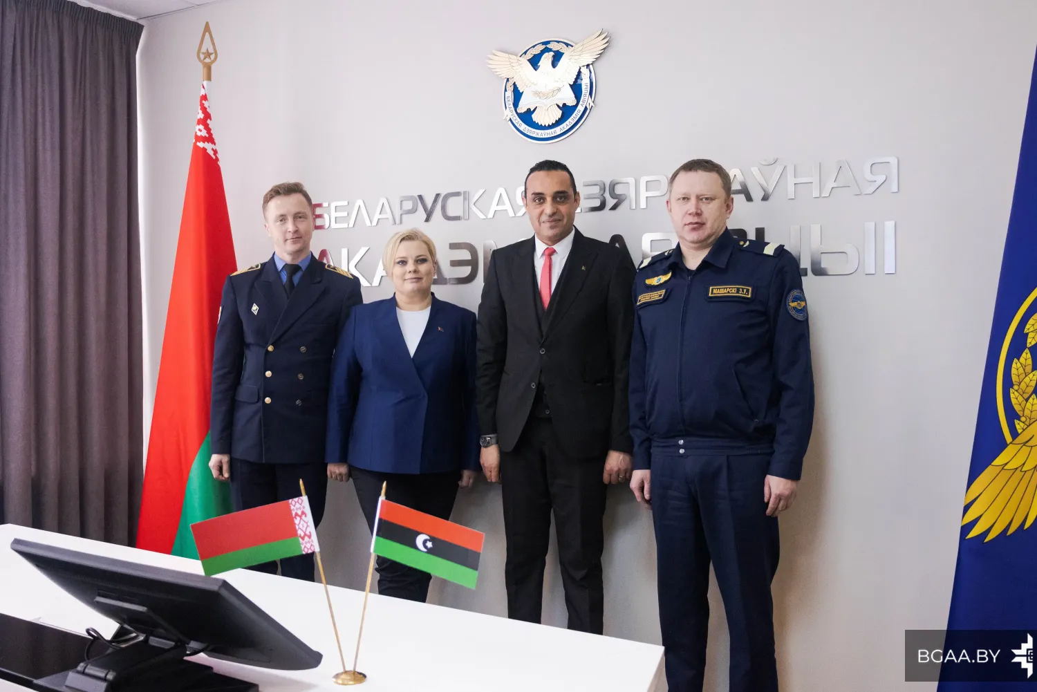 7 февраля Белорусскую государственную академию авиации посетила делегация в составе Временного поверенного в делах Государства Ливия в Республике Беларусь Астейта Мухаммед Мария, директора общества с ограниченной ответственностью «Райт Степ» Эль-Кеш Ахмед Абу Аль-Касима и помощника руководителя Марии Дмитриевны Бонк.