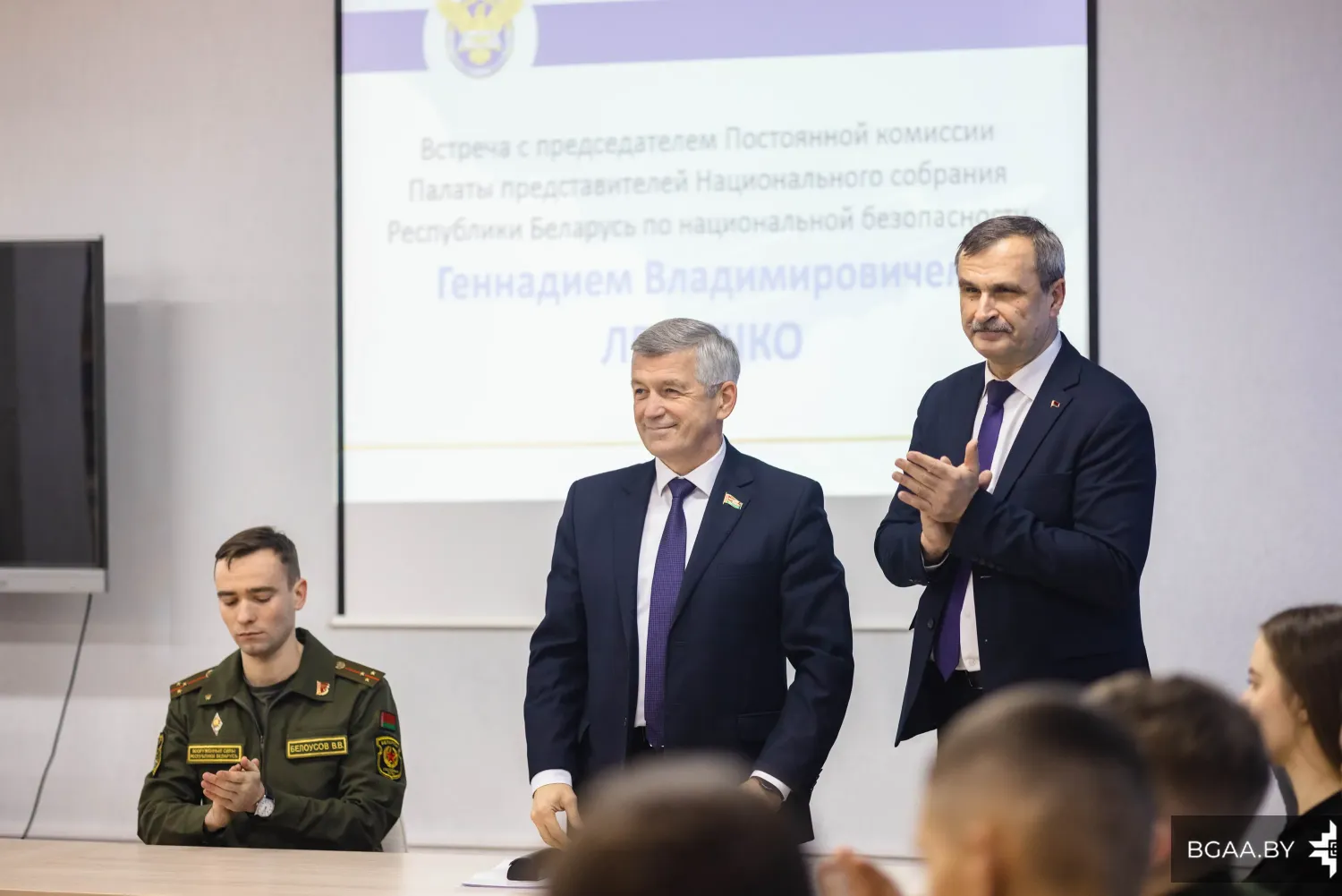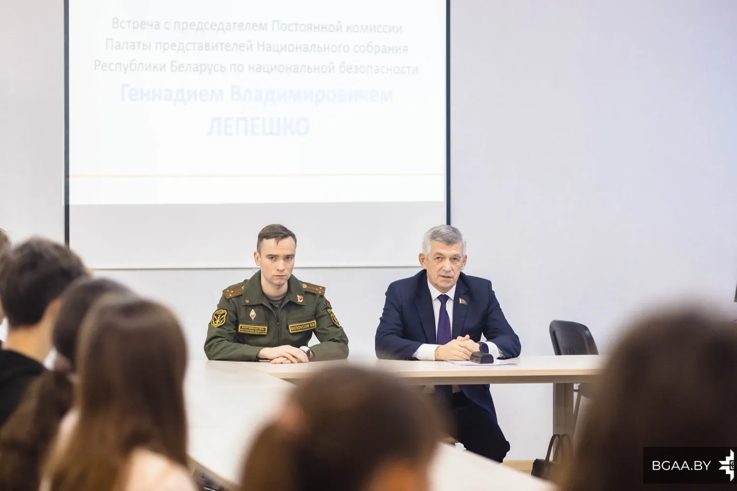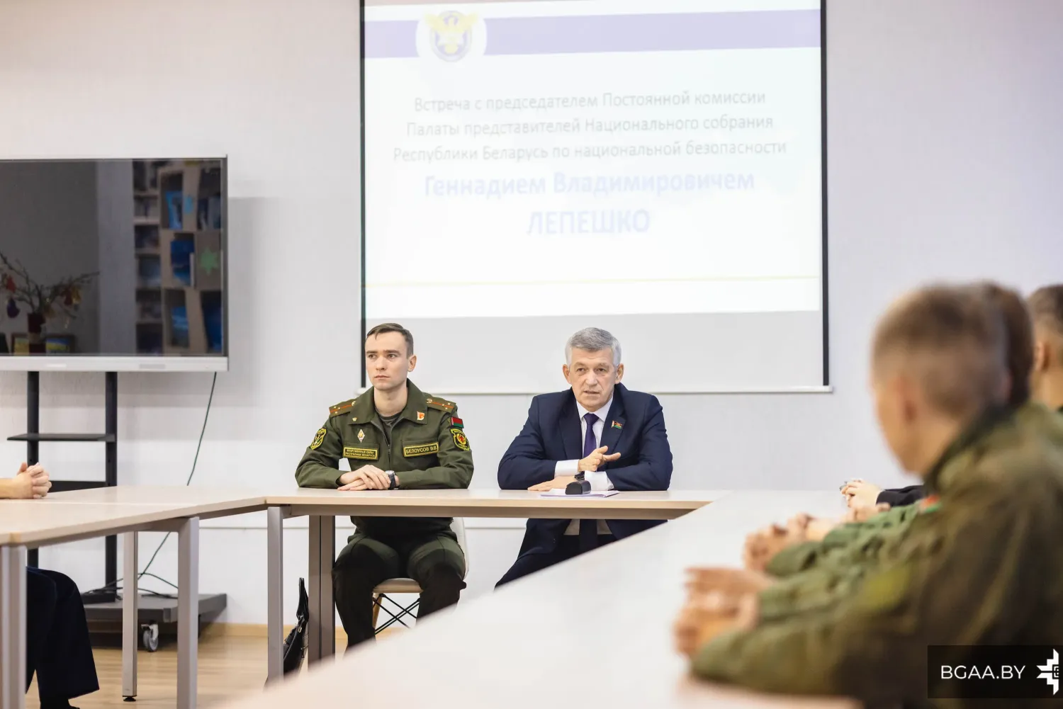 Вадим Викторович рассказал курсантам о молодежном парламенте и реализуемых проектах, а также предложил принять участие в них. В ходе диалога курсантам удалось задать интересующие их вопросы на различные темы. Также участники заседания затронули вопрос о проводимых мероприятиях в связи с двадцатипятилетнем Союзного государства.