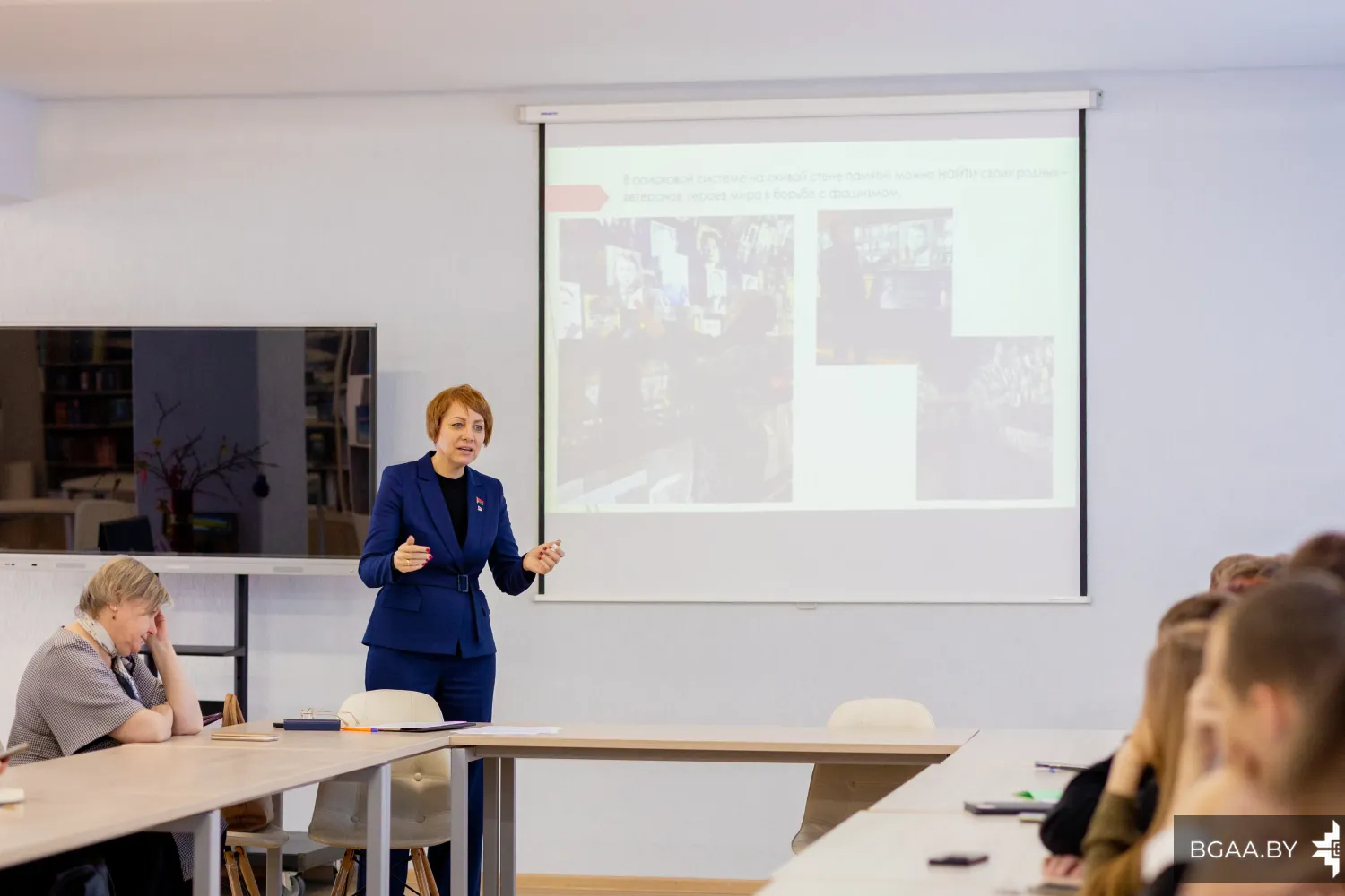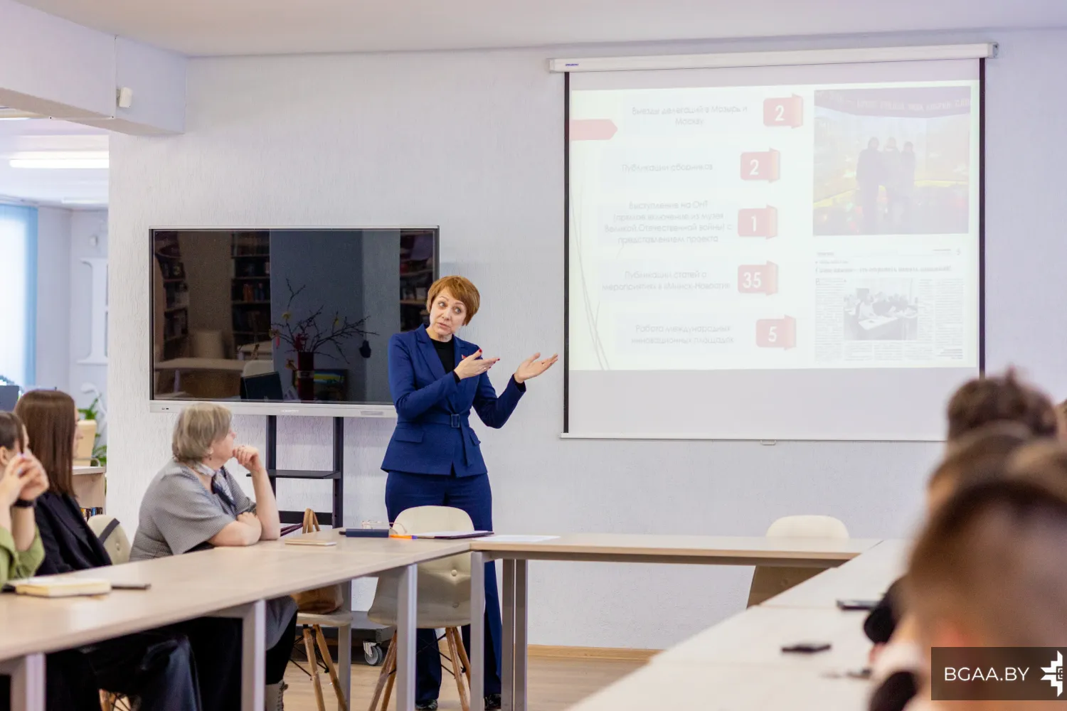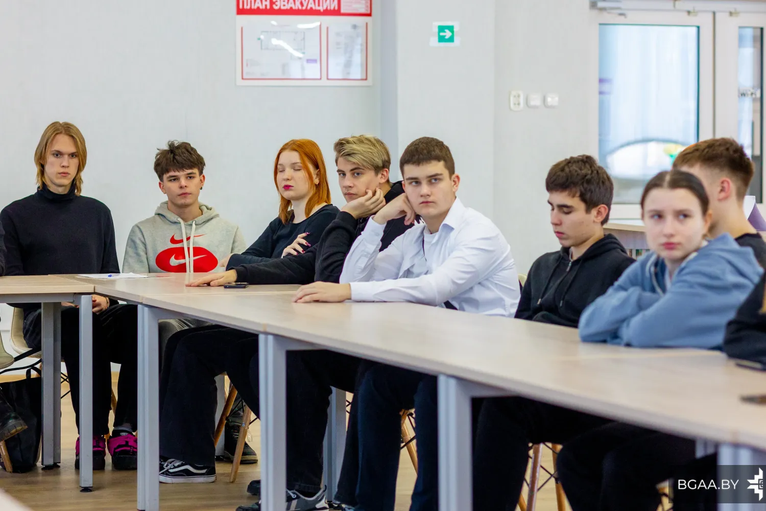 Председатель курсантского совета академии Владислав Симонович рассказал курсантам о подготовке к предстоящему 50-летнему юбилею БГАА. В процессе диалога курсанты-лидеры выступили со своими идеями празднования знаменательной даты.